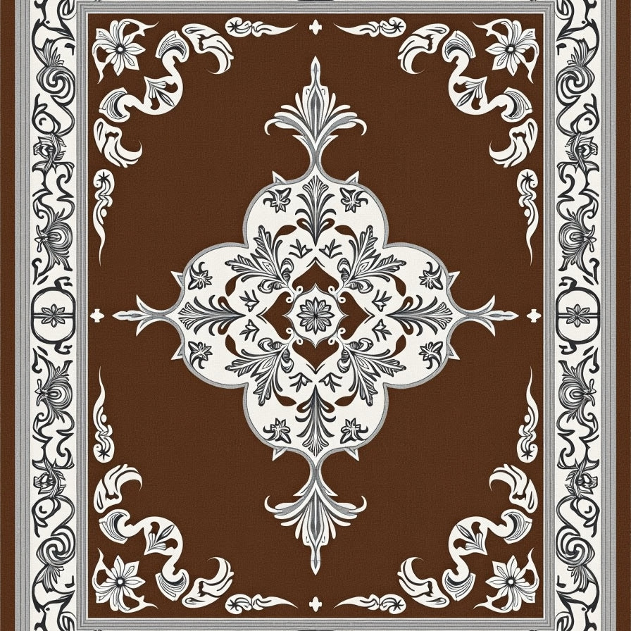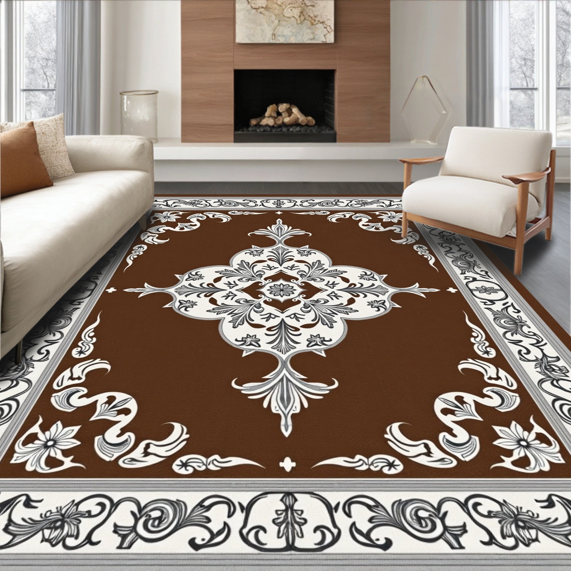 Vintage Medallion Distressed Ornate Floral Motif Fade Resistant(Brown)