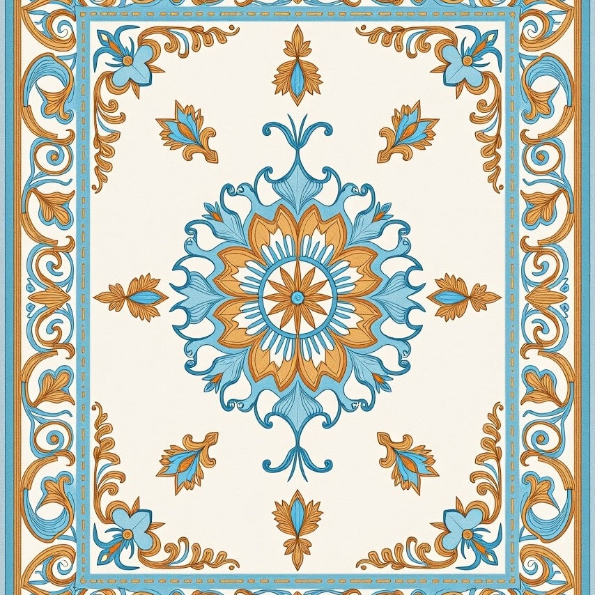Neutral Style With Elegant Medallion And Floral Details(Beige)