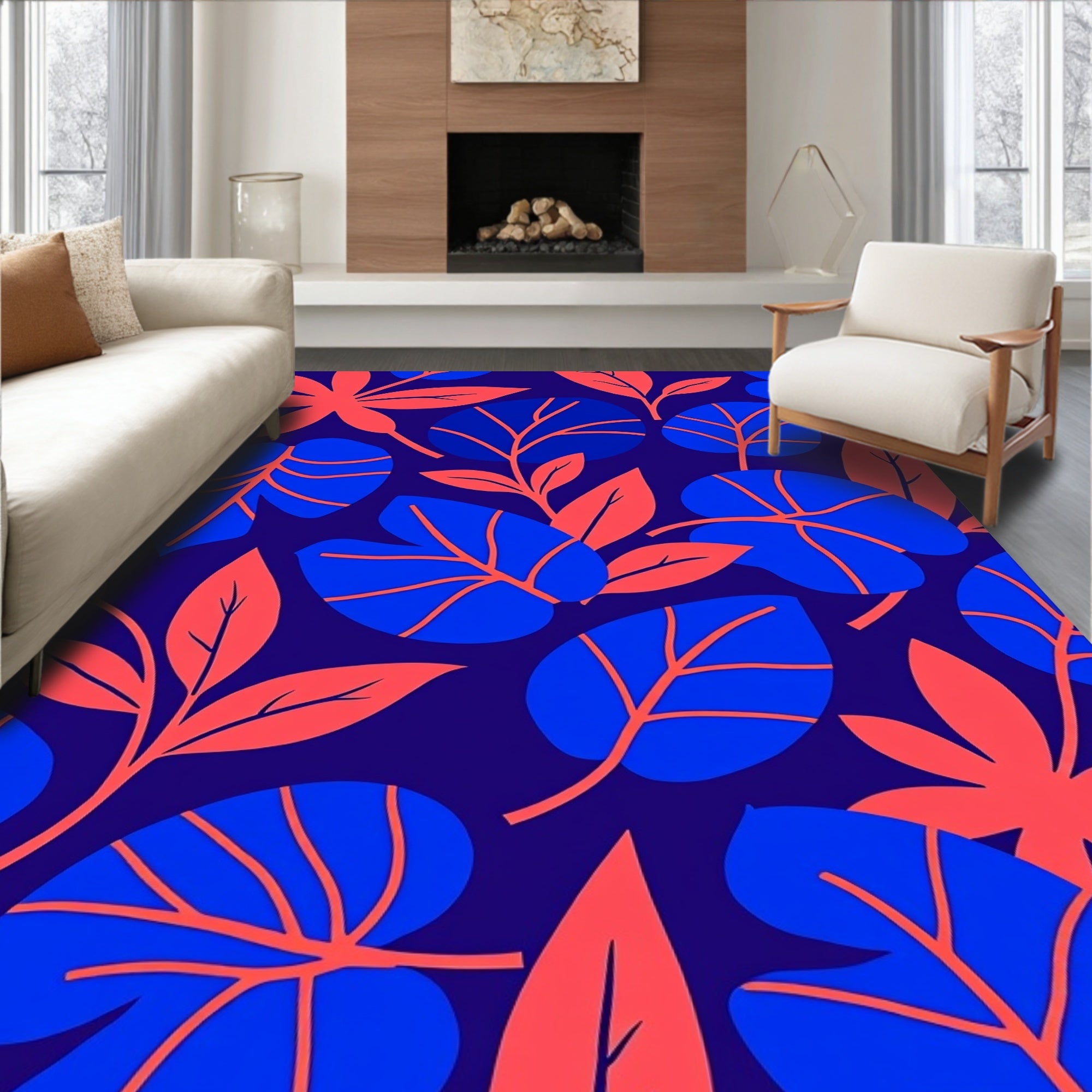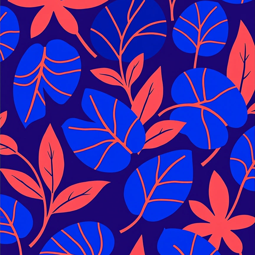 Tropical Inspired with Leafy Silhouettes and Abstract Florals(Blue)
