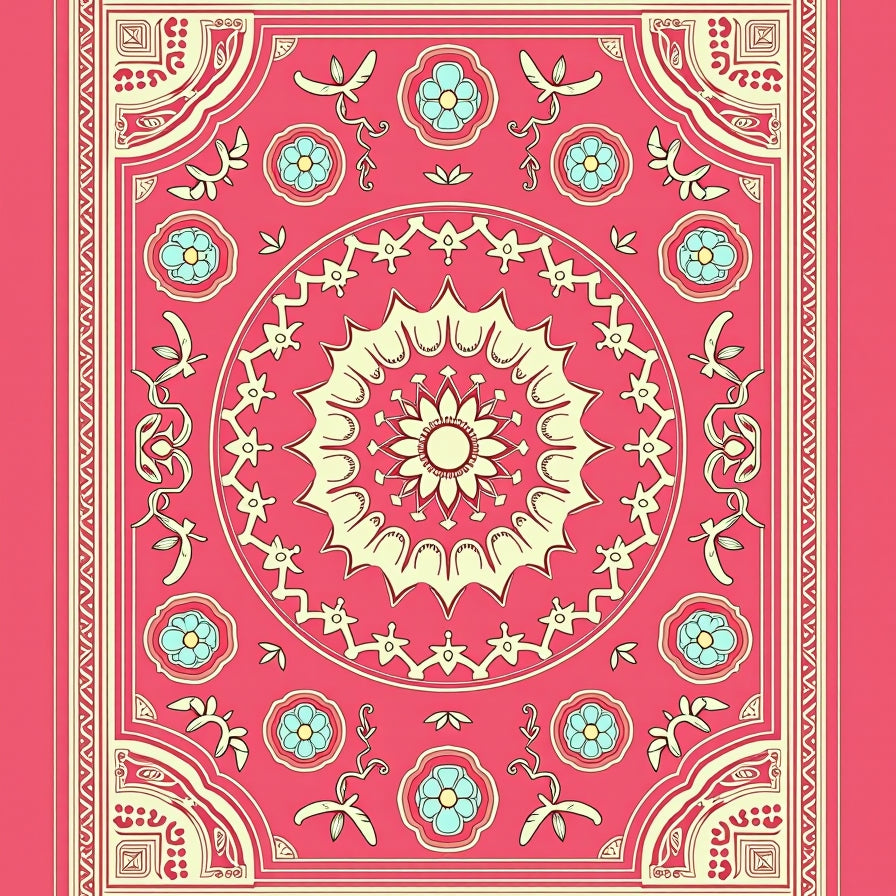 Blossoming Floral Vintage Medallion With Intricate(Pink)