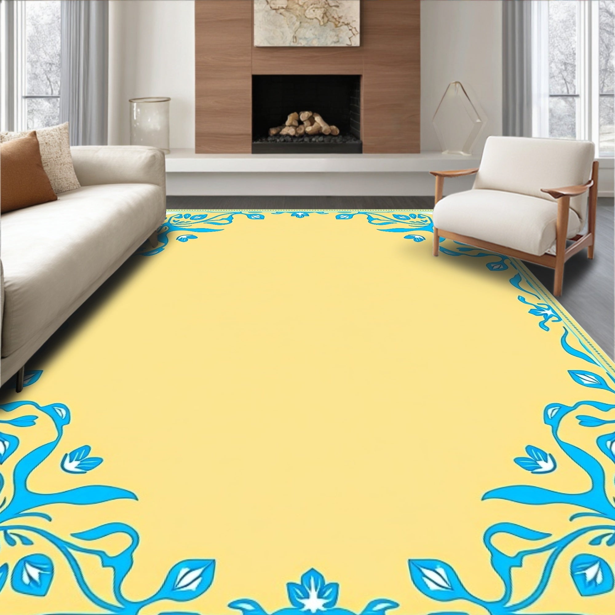 Vintage Distressed with Symmetrical Interlocking Motifs and Floral Accents(Yellow)