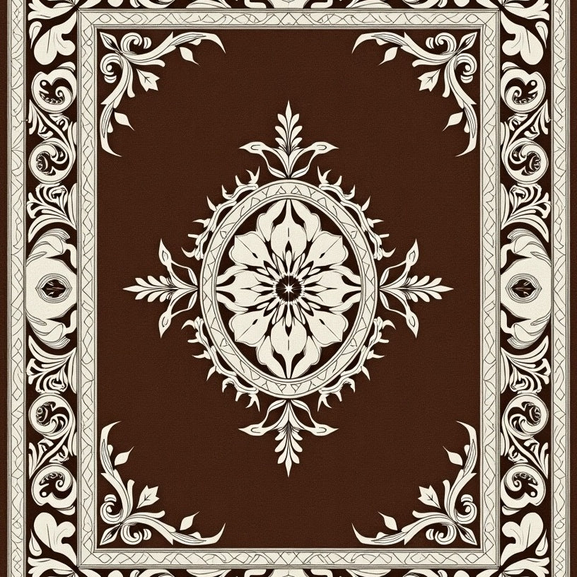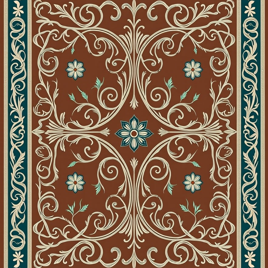 Art Nouveau Scrollwork with Leafy Flourish and Floral Mosaic(Brown)