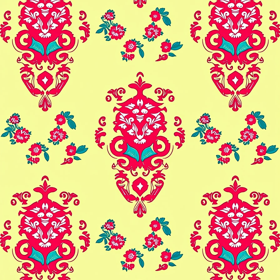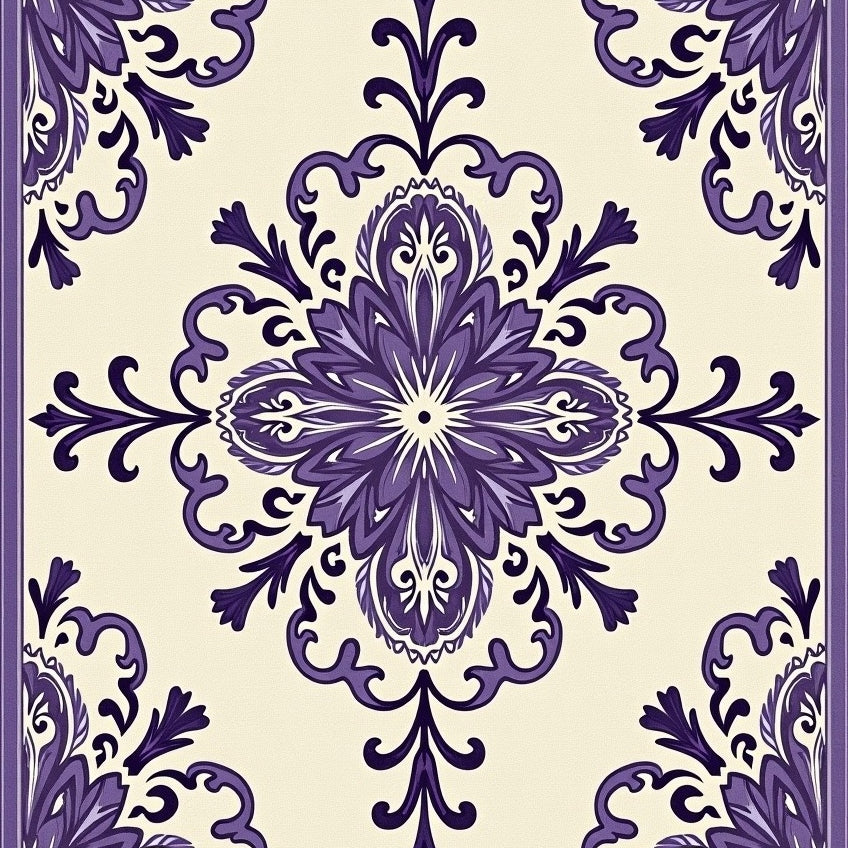 Elegant Vintage Damask with Floral Embellishments(Purple)