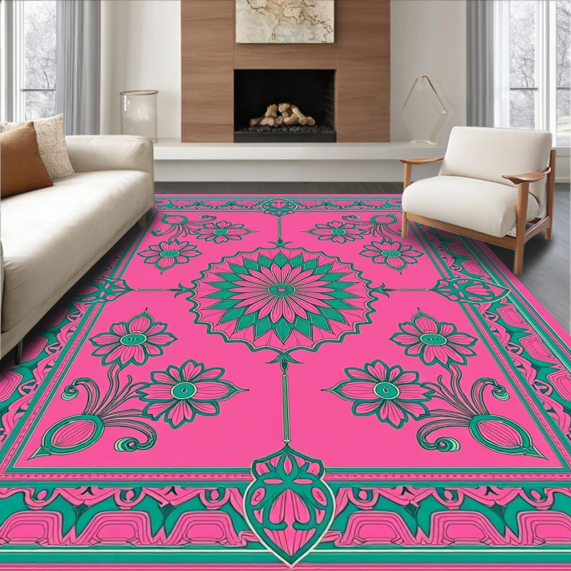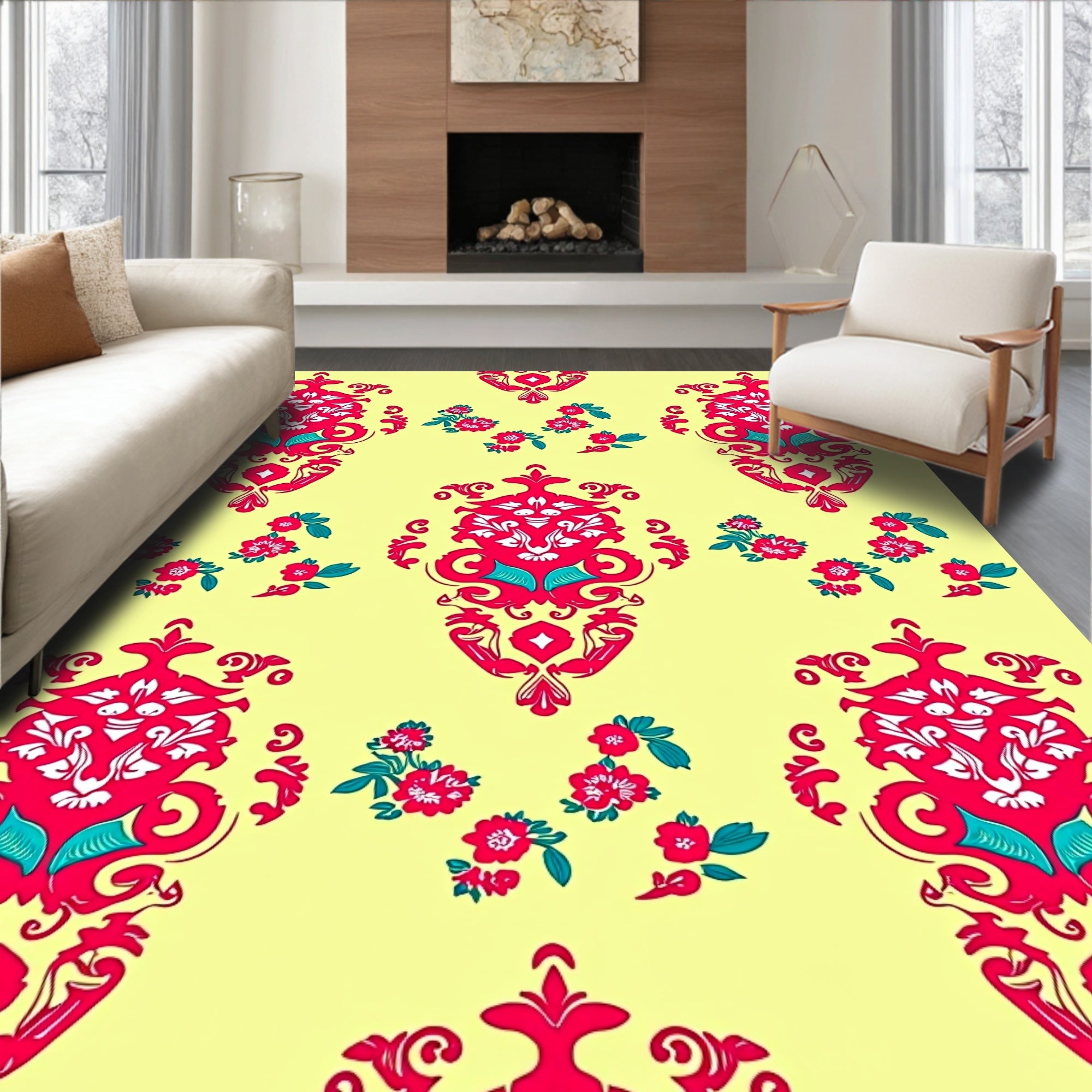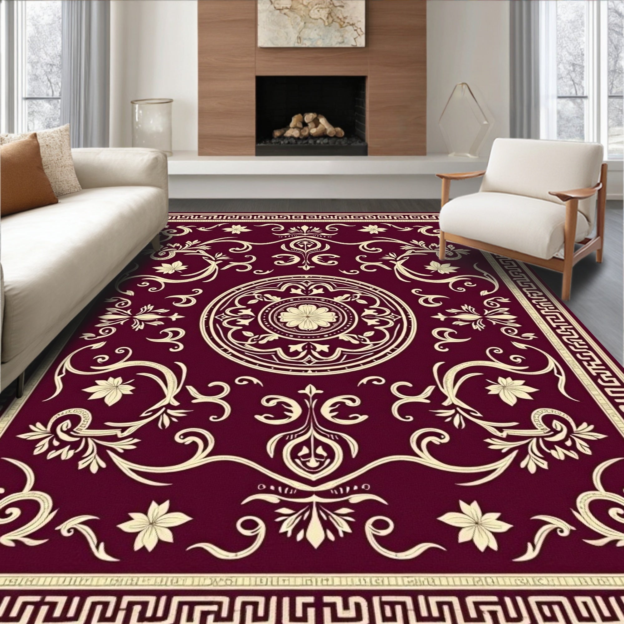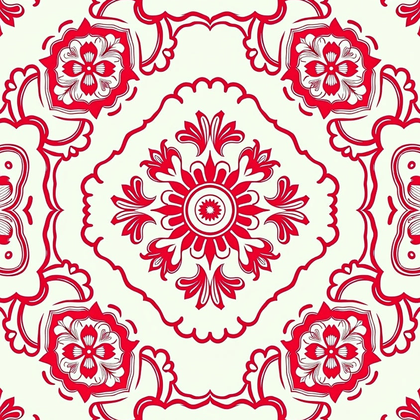 Elegant Floral Medallion Contemporary Decorative(Red)