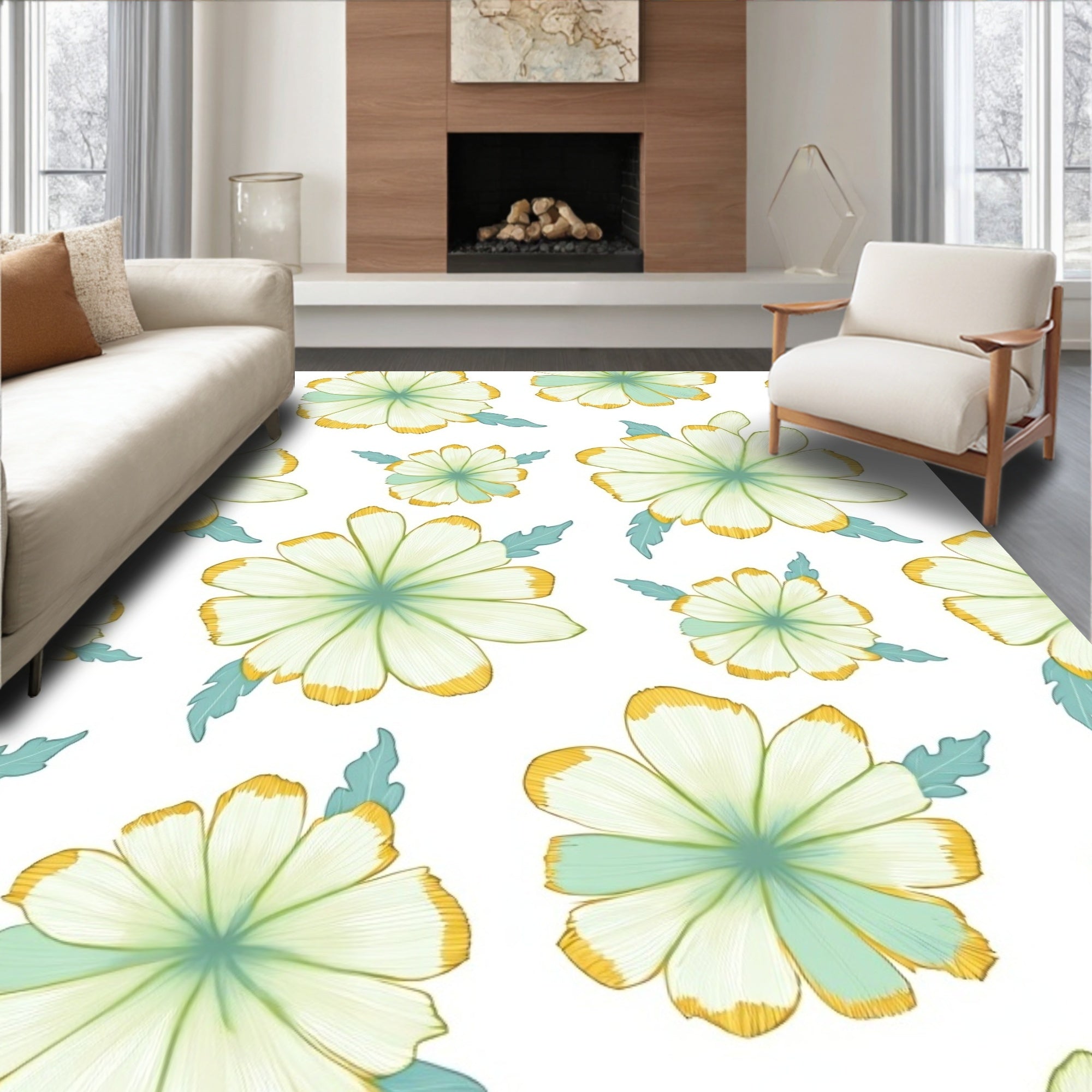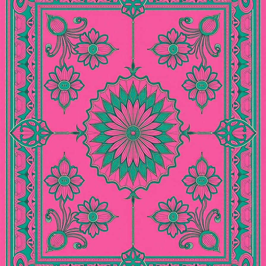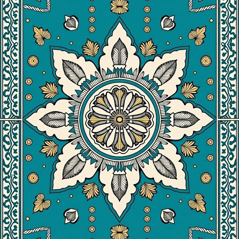 Blossom Arrangement with Ornate Floral Petals and Dot Accents(Teal)