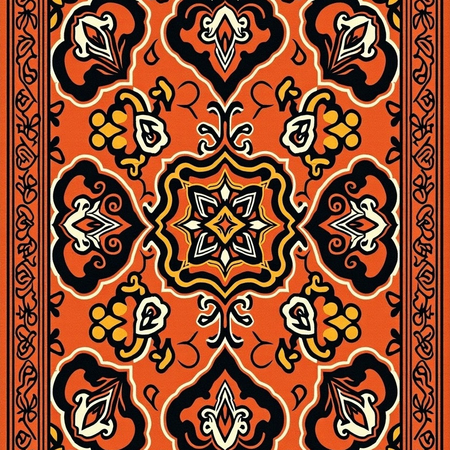 Lattice with Ornate Scrollwork and Abstract Floral Highlights(Orange)