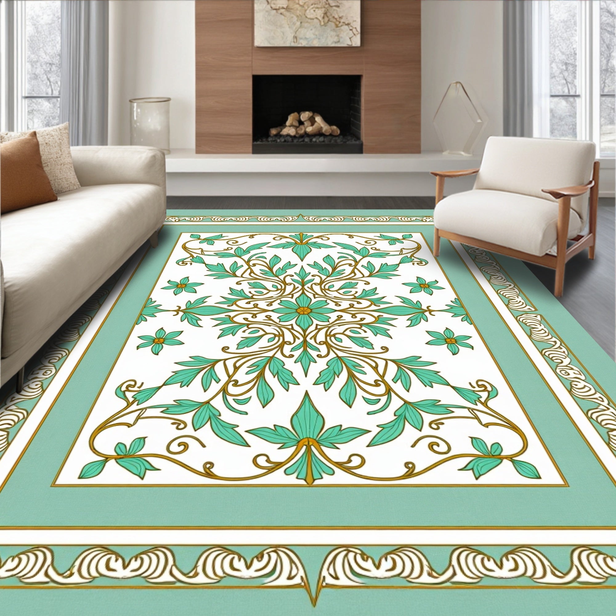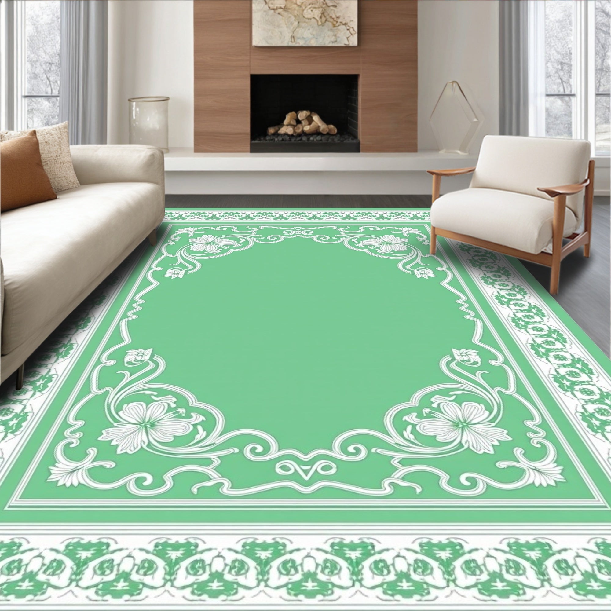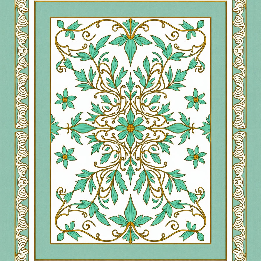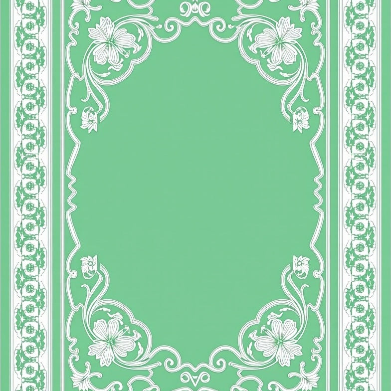 Artisan Floral Blossom Motif with Baroque Scrollwork Accents(Green)