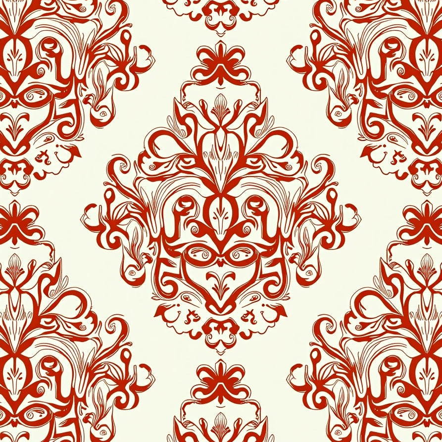 Retro Floral Medallion with Ornate Vine Motif and Whimsical Botanical Accents(Red)