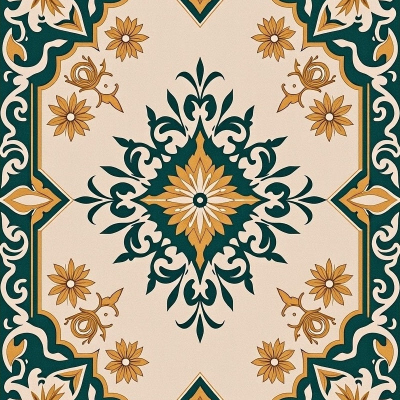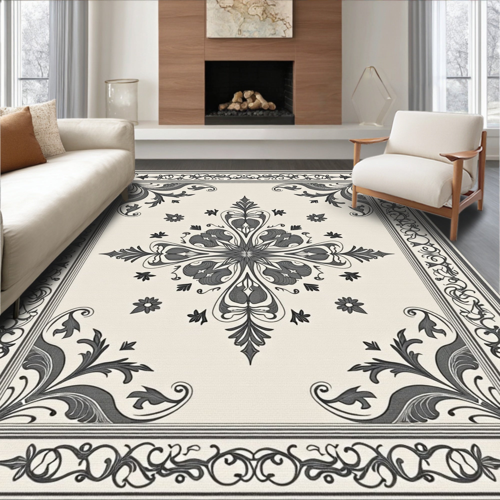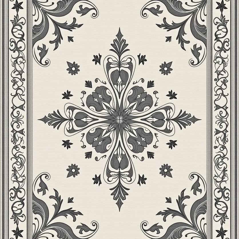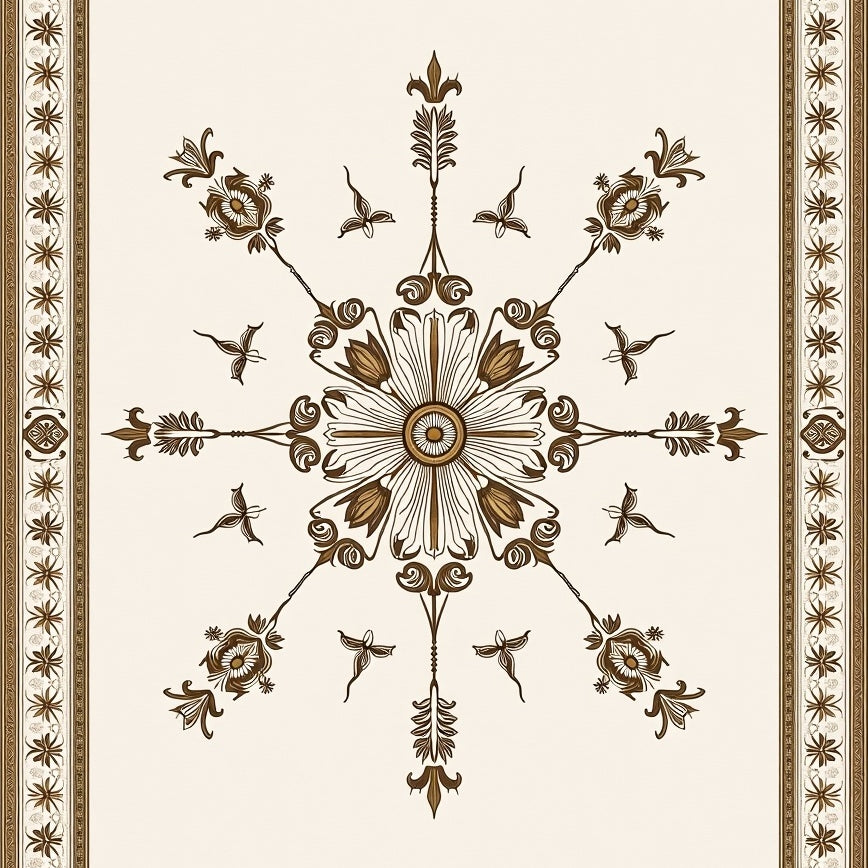 Vintage Floral Medallion Artistry With Elegant Interwoven Motifs(Ivory)