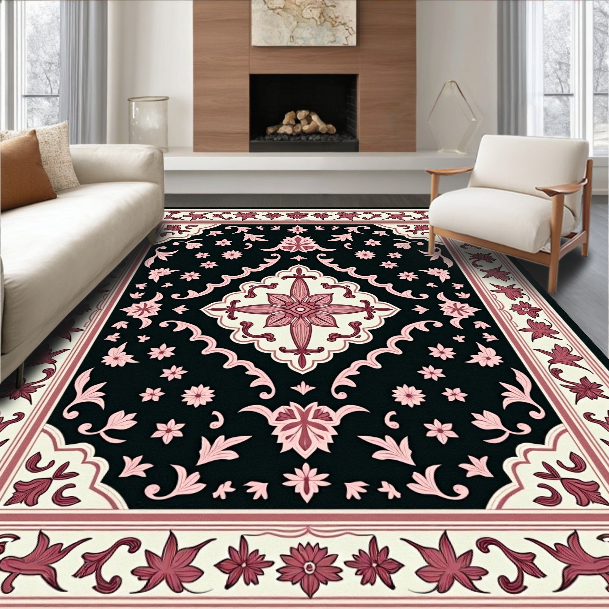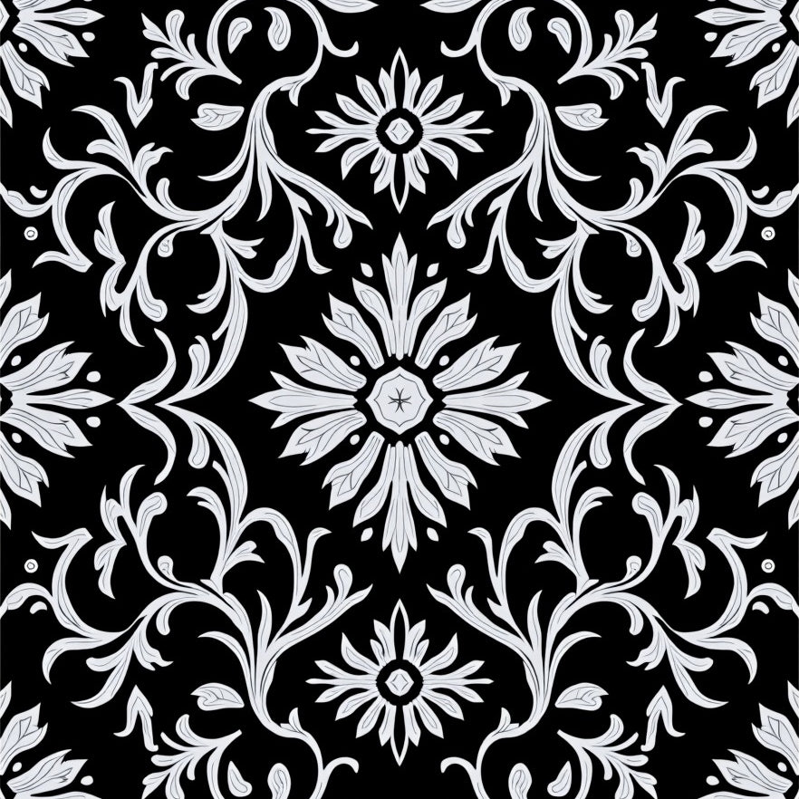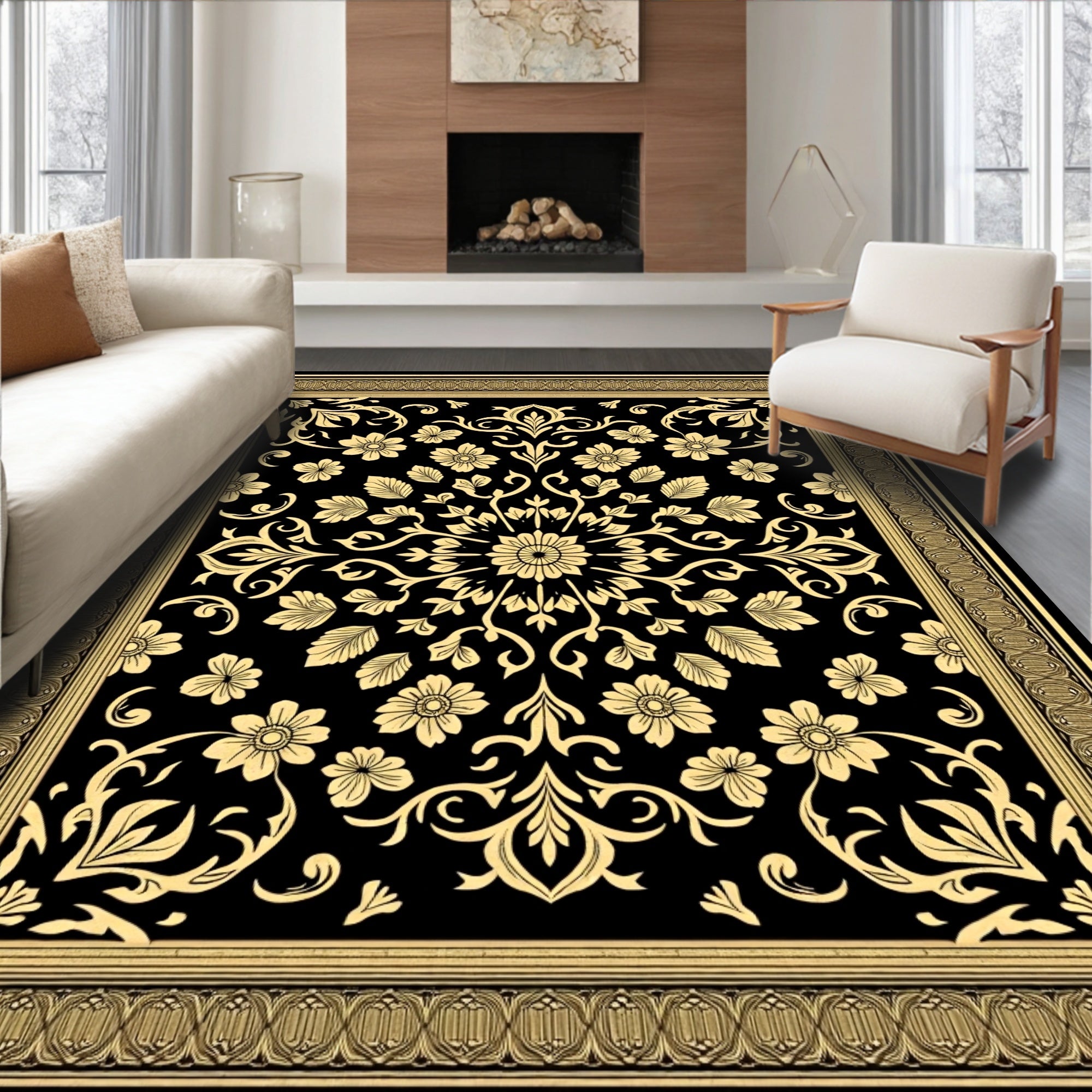 Elegant Transitional Damask Floral Hallway Passage(Black)