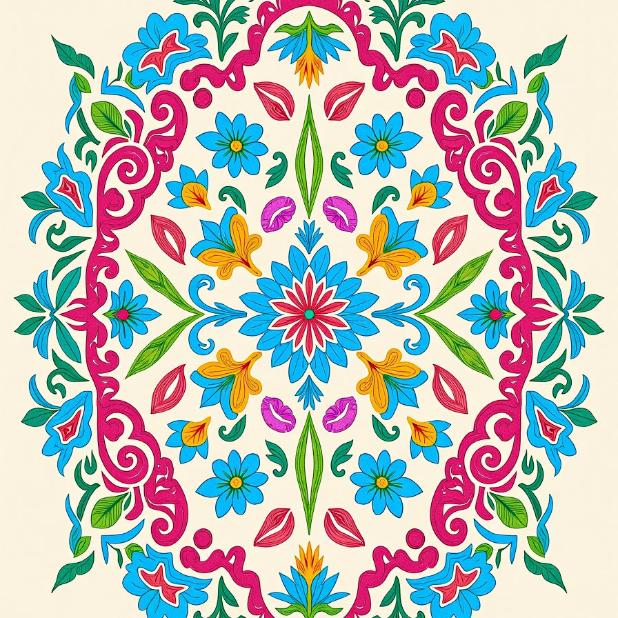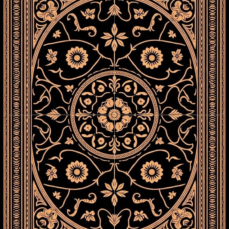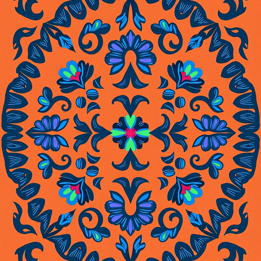 Abstract Floral Motif with Interlocking Symmetry and Textured Accents(Orange)