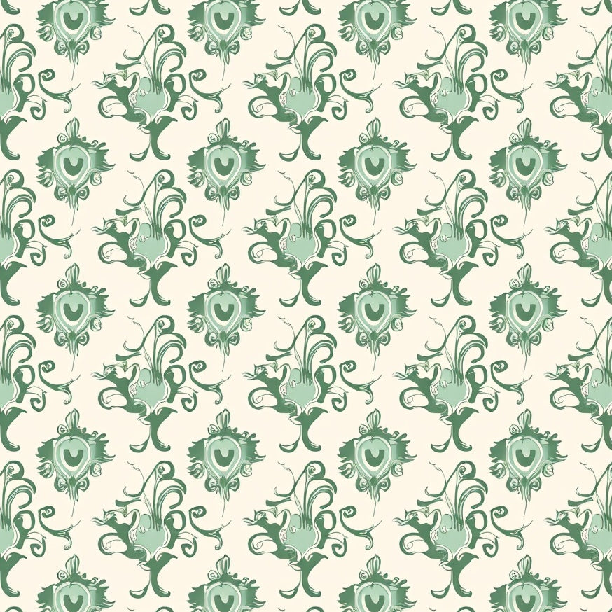 Damask Ornamental Scrollwork Floral Majesty(Green)