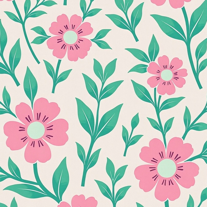 Floral Canopy Design with Airy Blossoms and Stylized Leafy Accents(Pink)