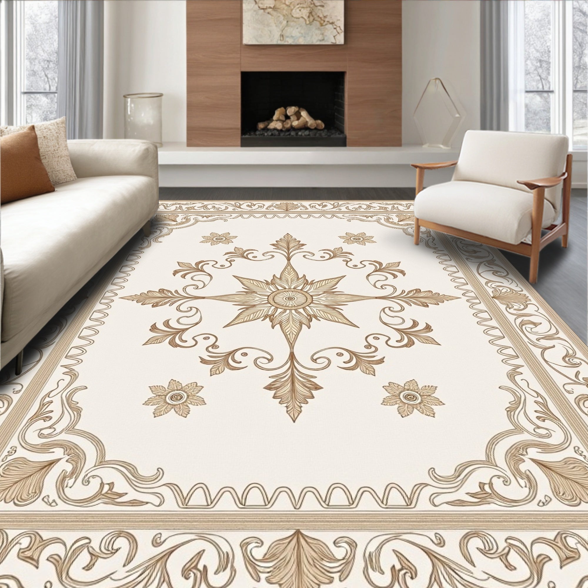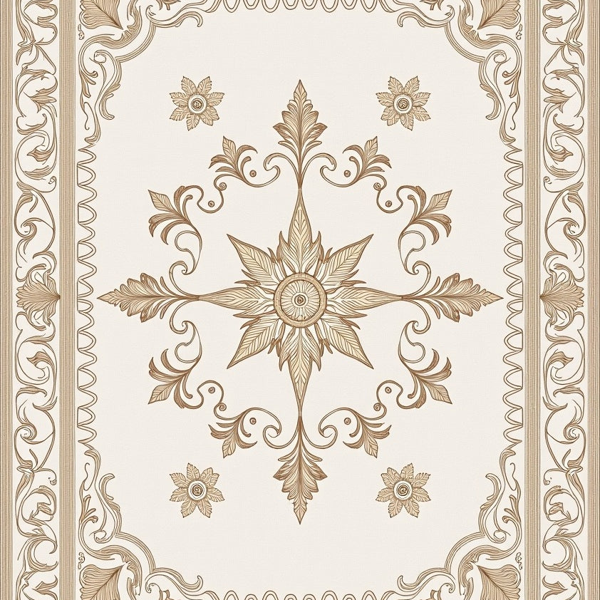 with Intricate Scrollwork and Floral Motifs(Beige)
