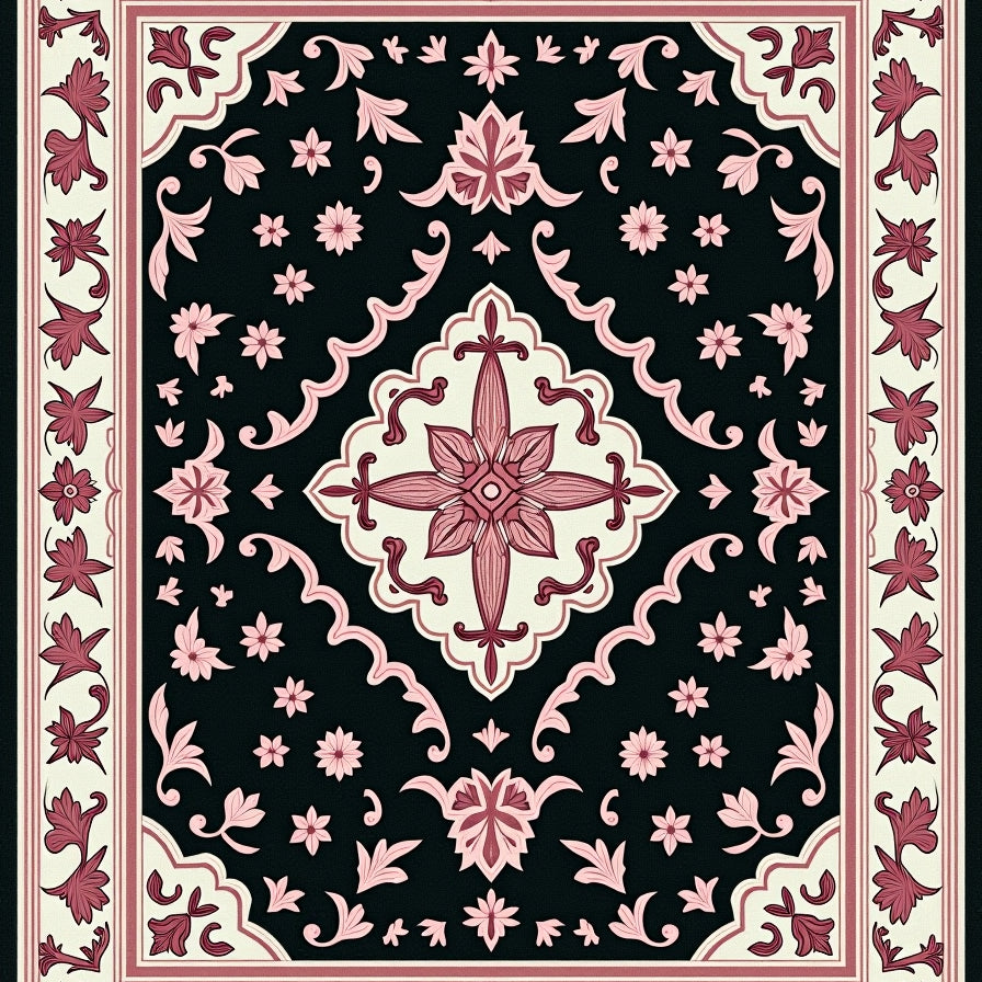 Heritage Fleur Border Design with Distressed Floral Centerpiece(Black)
