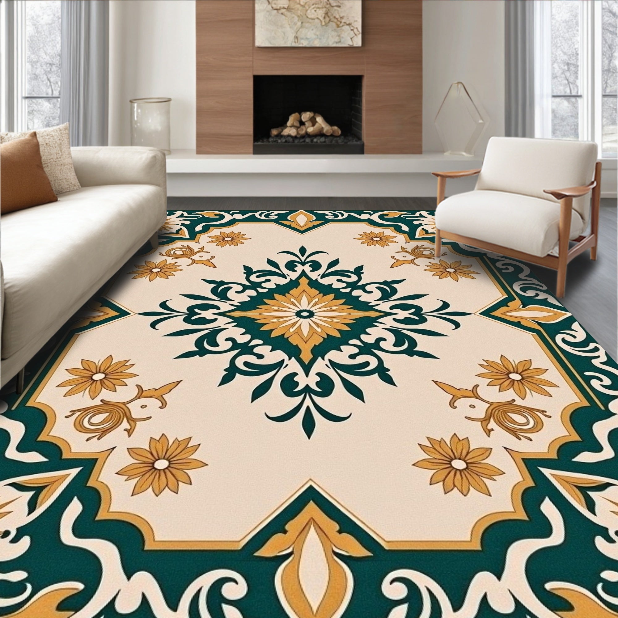 Distressed Floral Medallion with Vintage Elegance and Ornamental Motifs(Ivory)