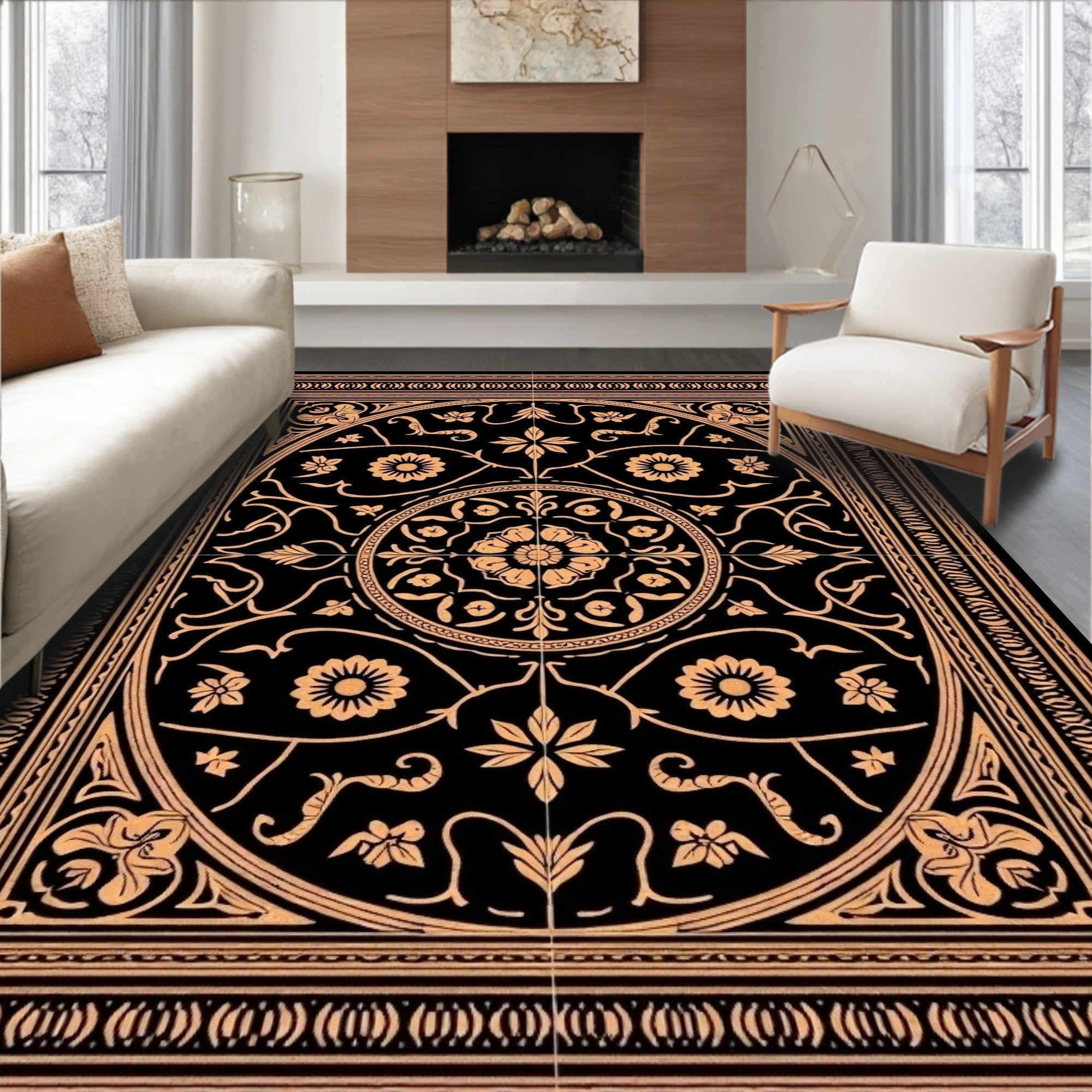 Vintage Distressed Floral Medallion Arabesque Motif Elegant Tapestry(Black)