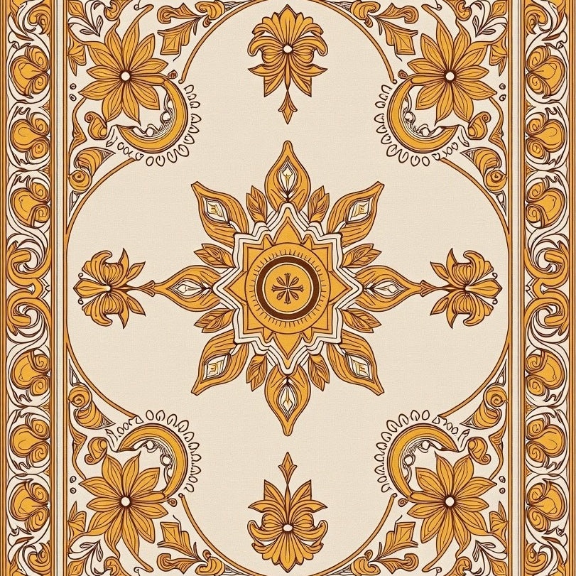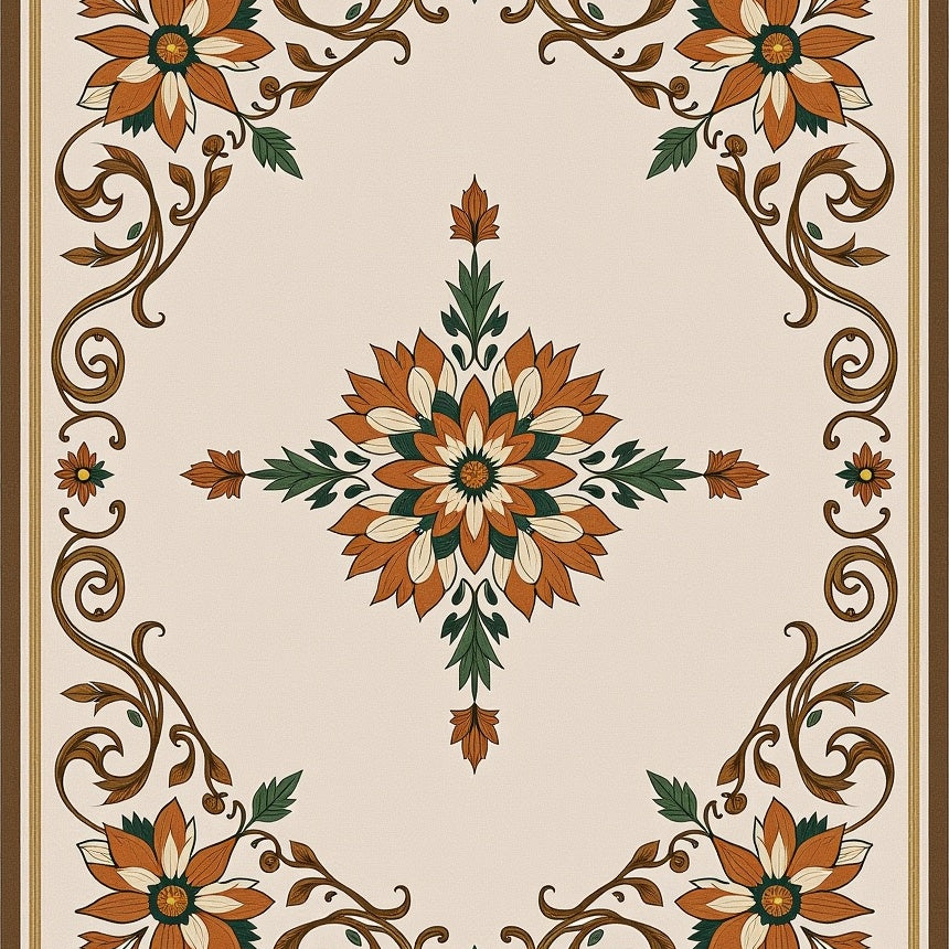 Vintage Floral Medallion with Interlocking Earth Tone Motifs(Beige)