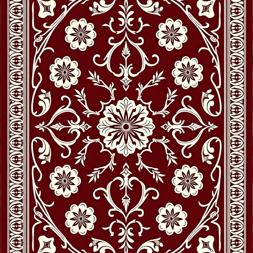 Floral Symmetrical Damask Interwoven Artistic(Red)