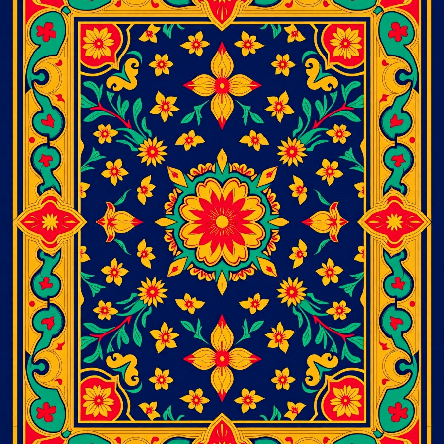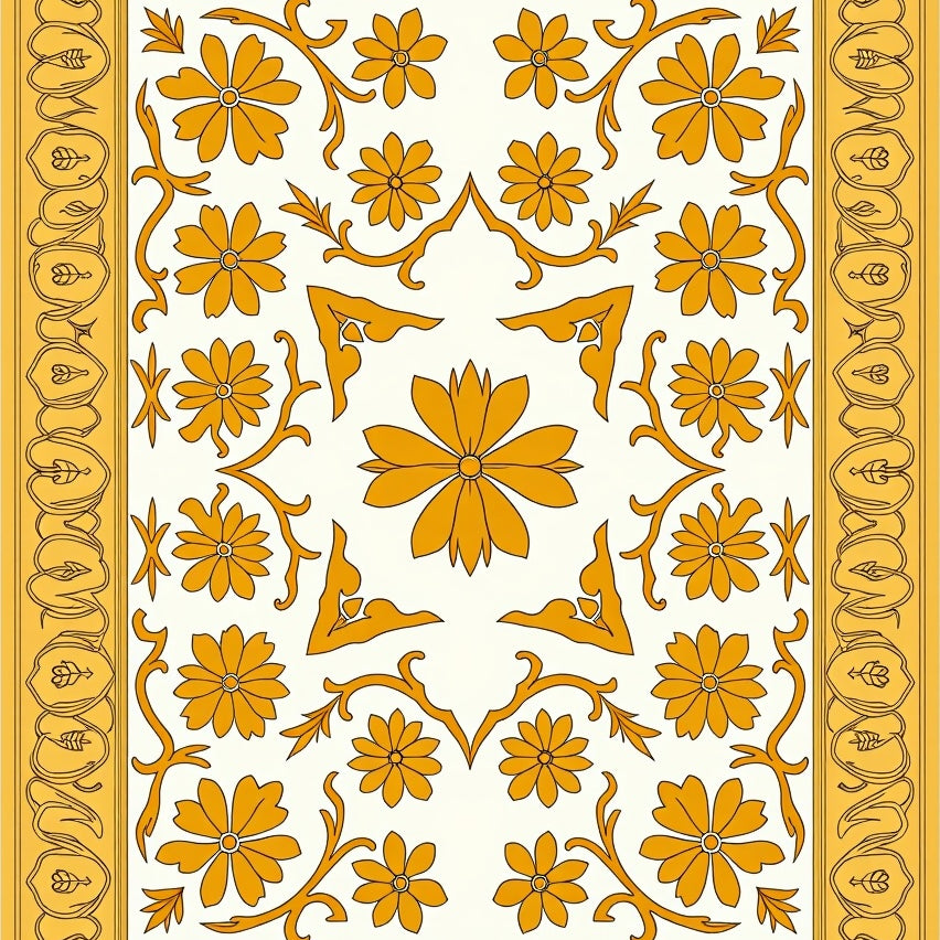Heritage Floral Blossom Circular Symmetrical Weaving(Yellow)