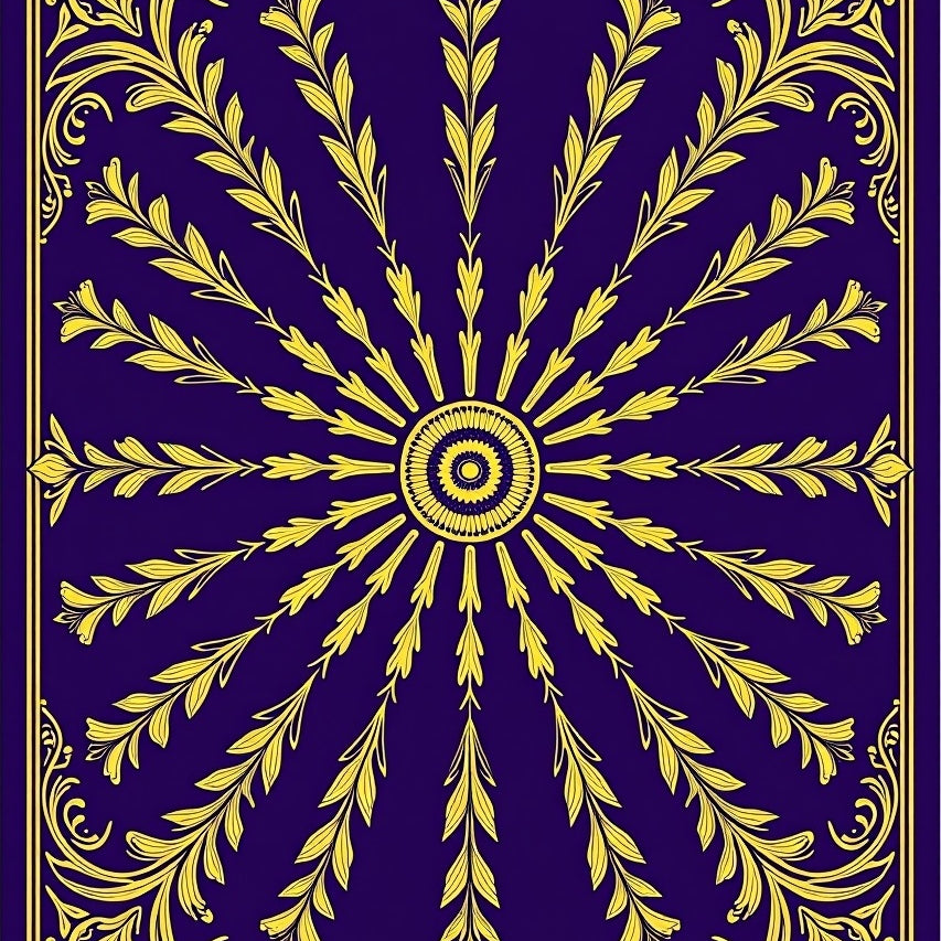 Intricate Floral Composition with Radiating Leaf(Purple)