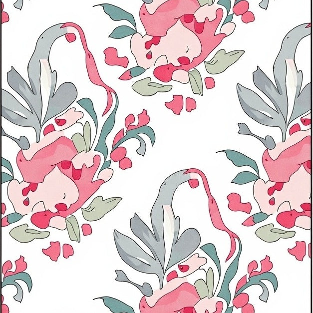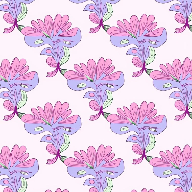 Artisan Interlocking Fleur Mosaic with Faded Watercolor Florals(Pink)