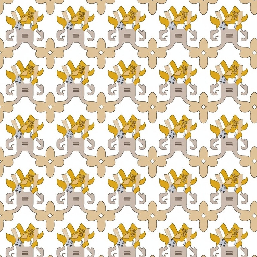 Modern Interlocking Lattice Trellis with Subtle Floral Motifs(Yellow)