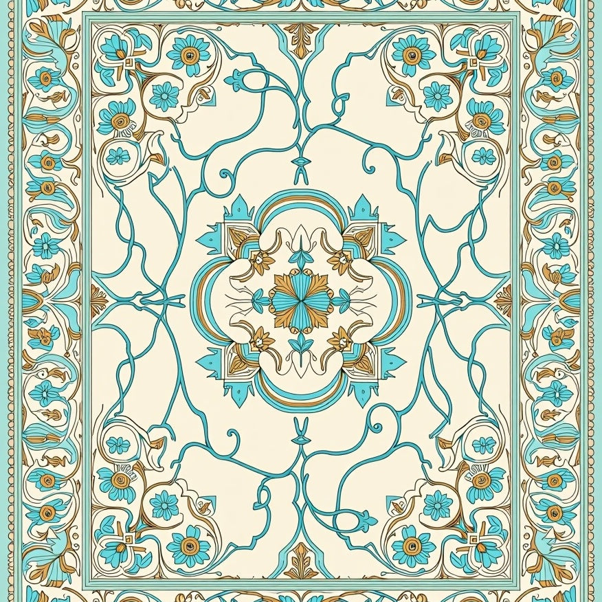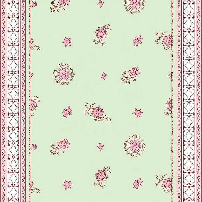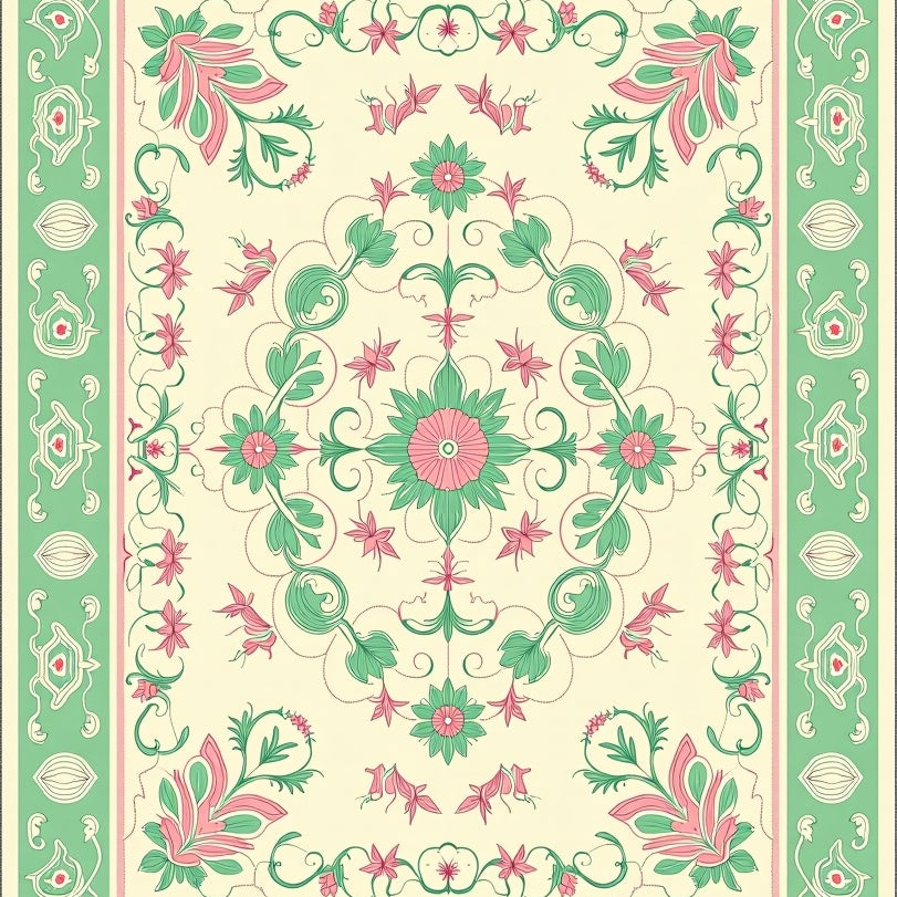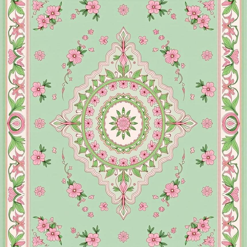 Vintage Medallion Revival Interlocking Floral Lattice Motif Design(Green)