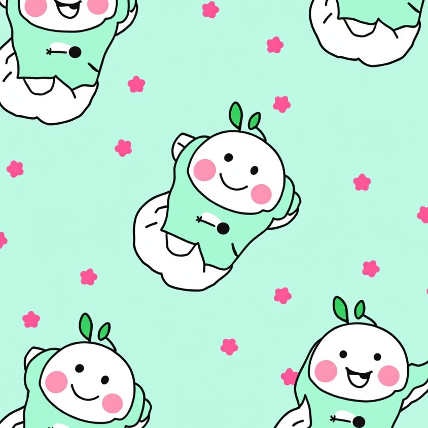 Dreamy Pond Creatures Beneath Floating Floral Canopy(Green)