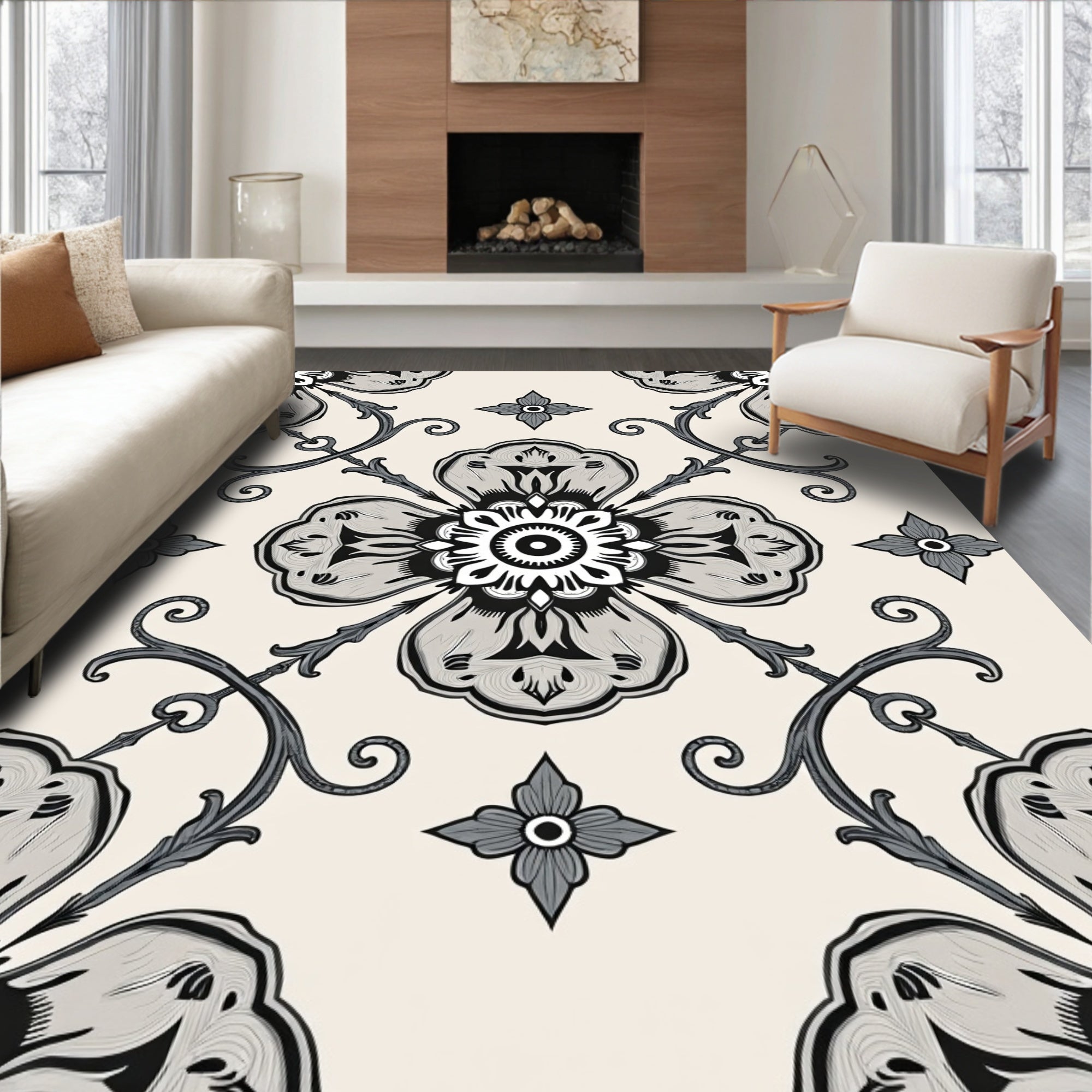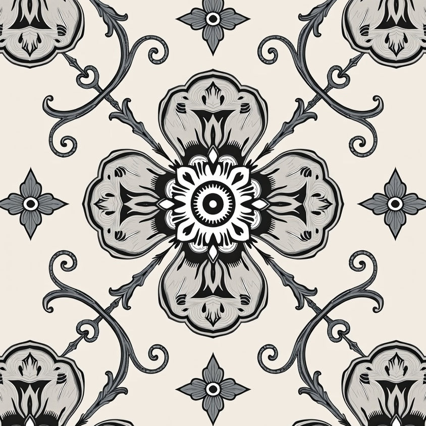Vintage Floral Medallion Distressed Heritage Elegant Timeless(Black)