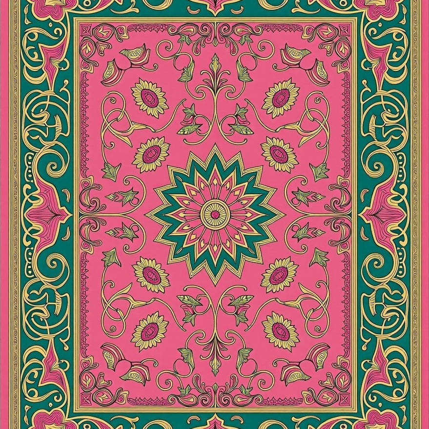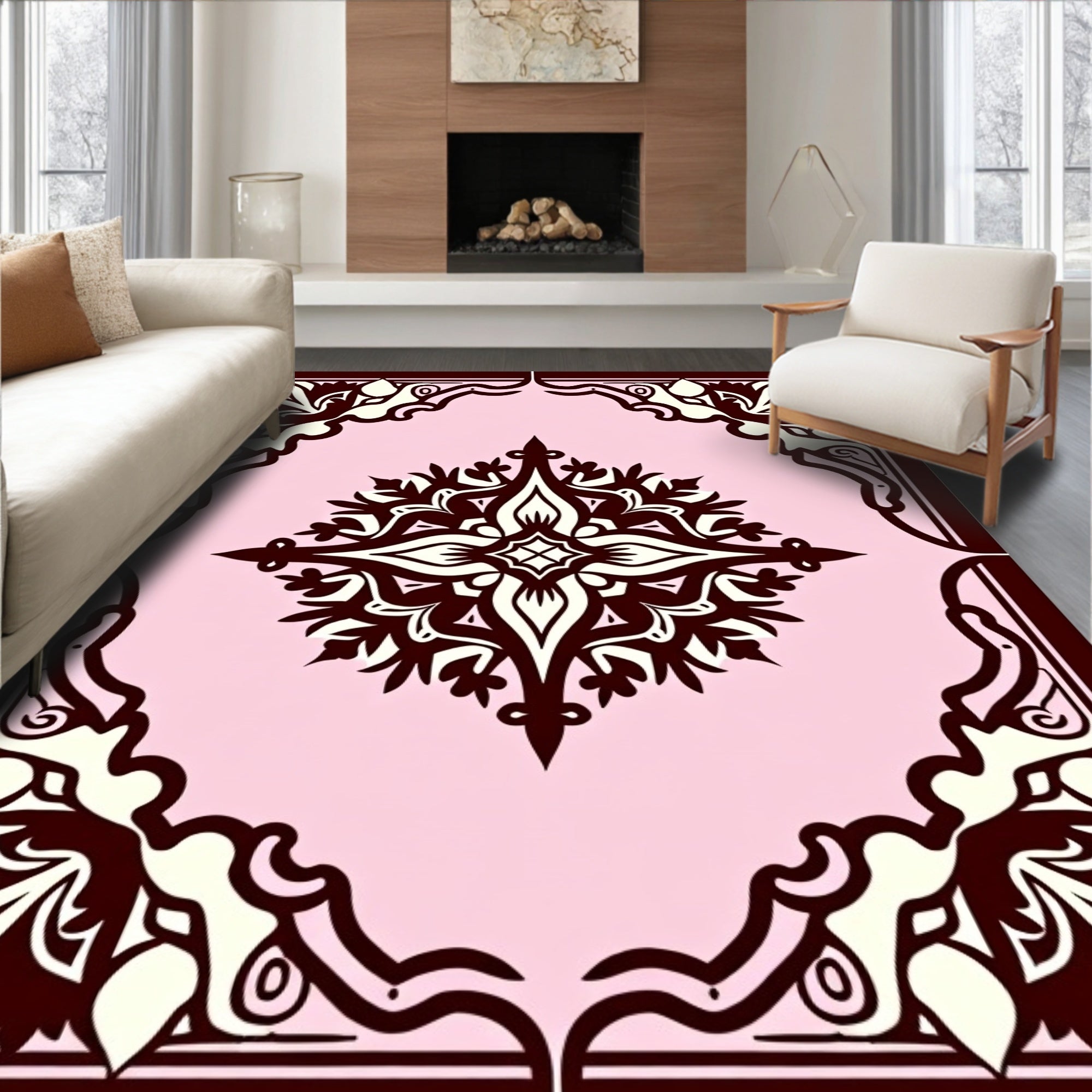 Vintage Medallion Ornate Floral Motif Traditional Design Floor(Pink)