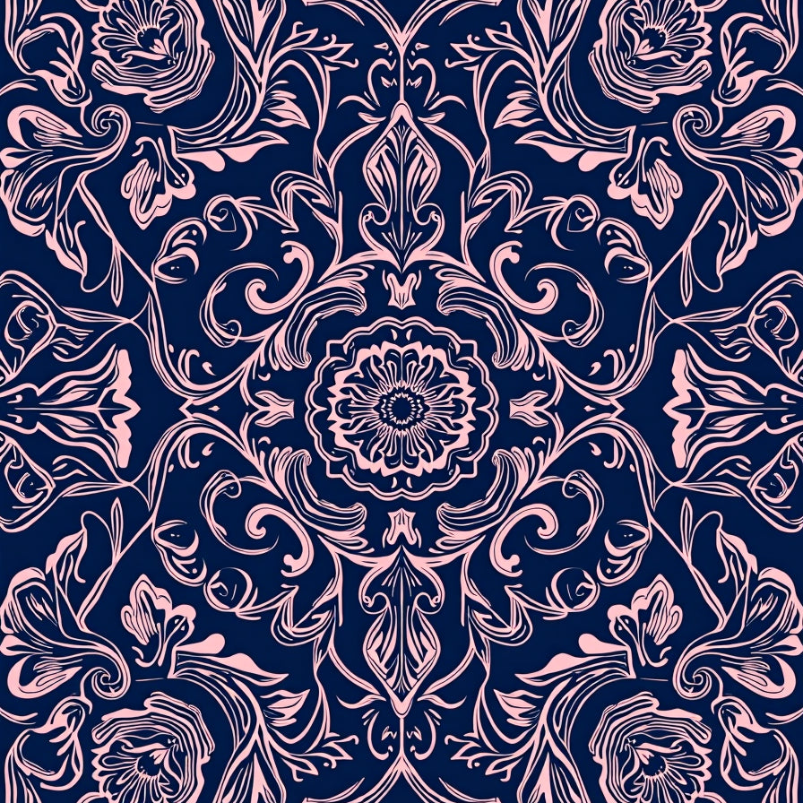 Baroque Floral Lattice with Vintage Damask Motif Accent(Blue)