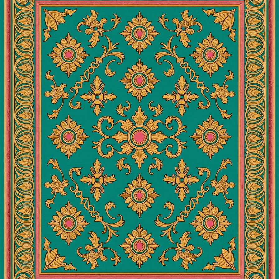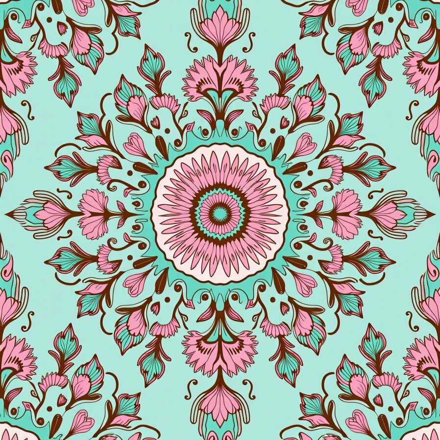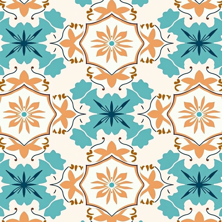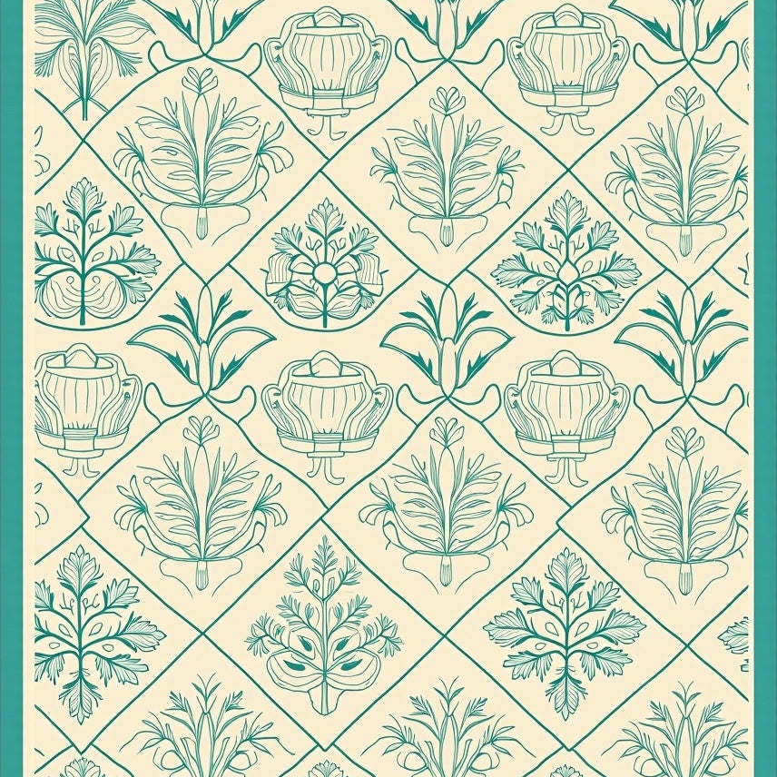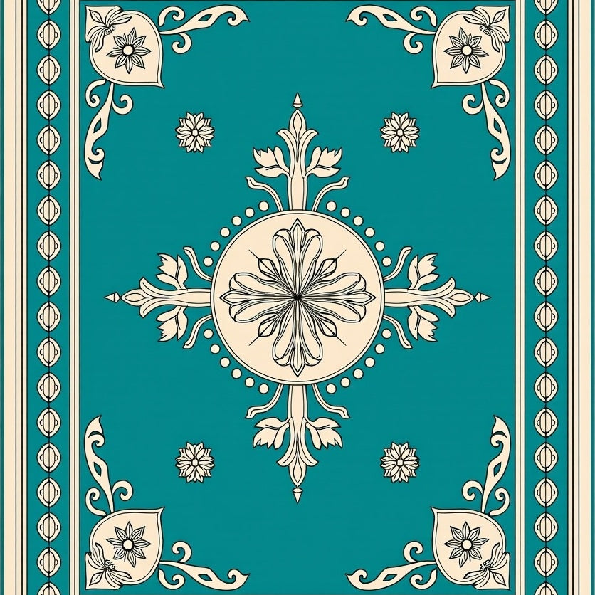 Serene Floral Mosaic with Interlocking Petal Medallions(Teal)