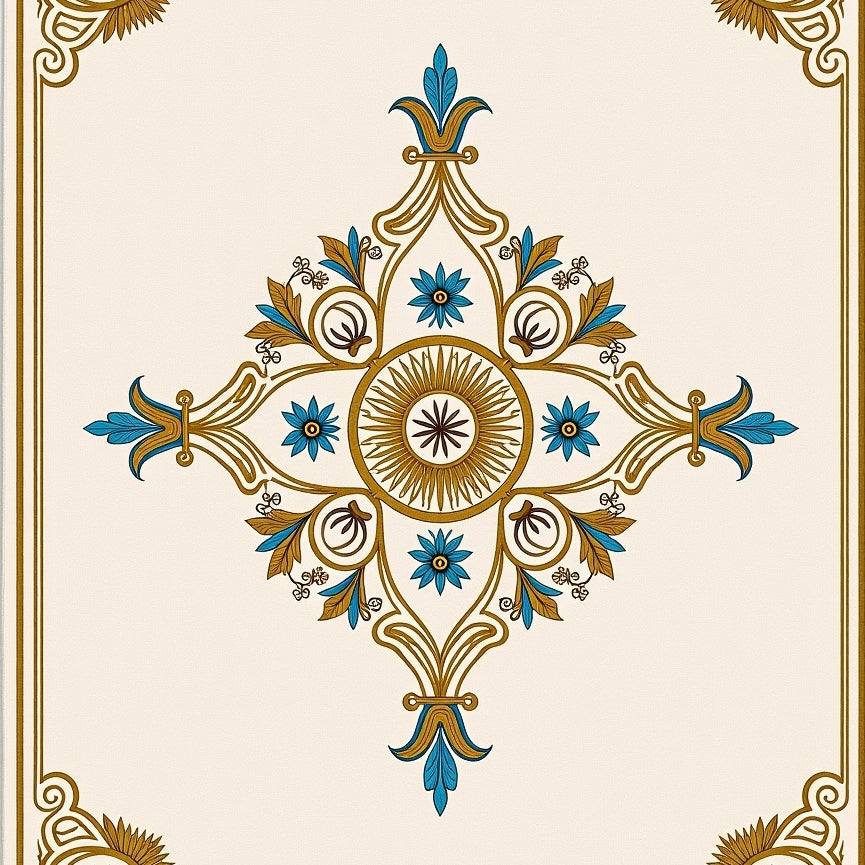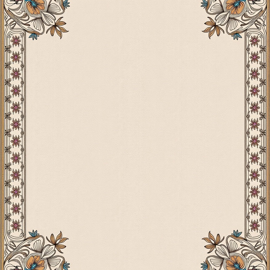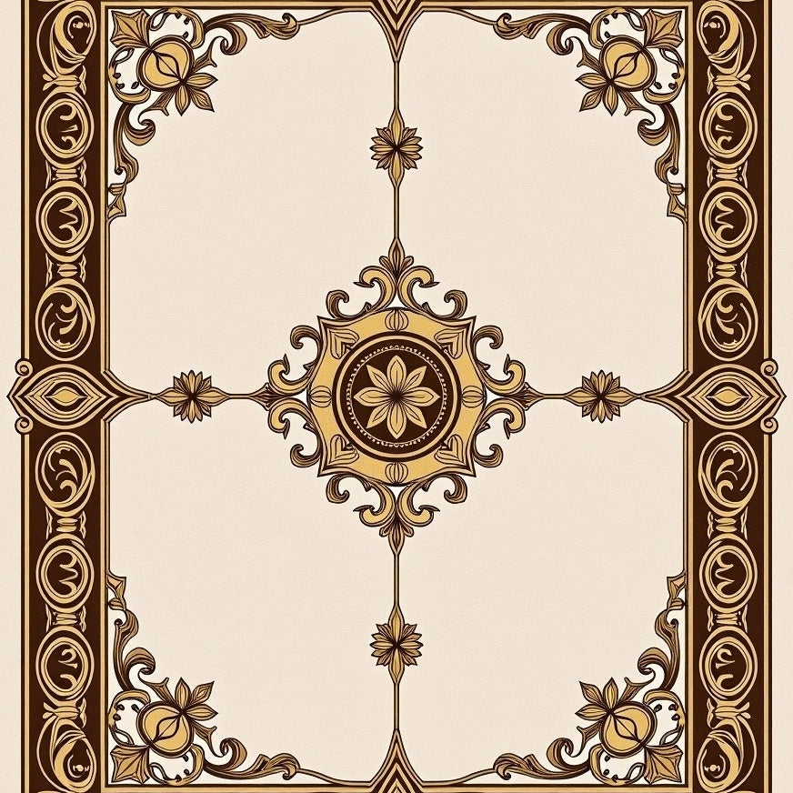 Ornamental Scrollwork Framed By Repeating Floral Borders(Beige)