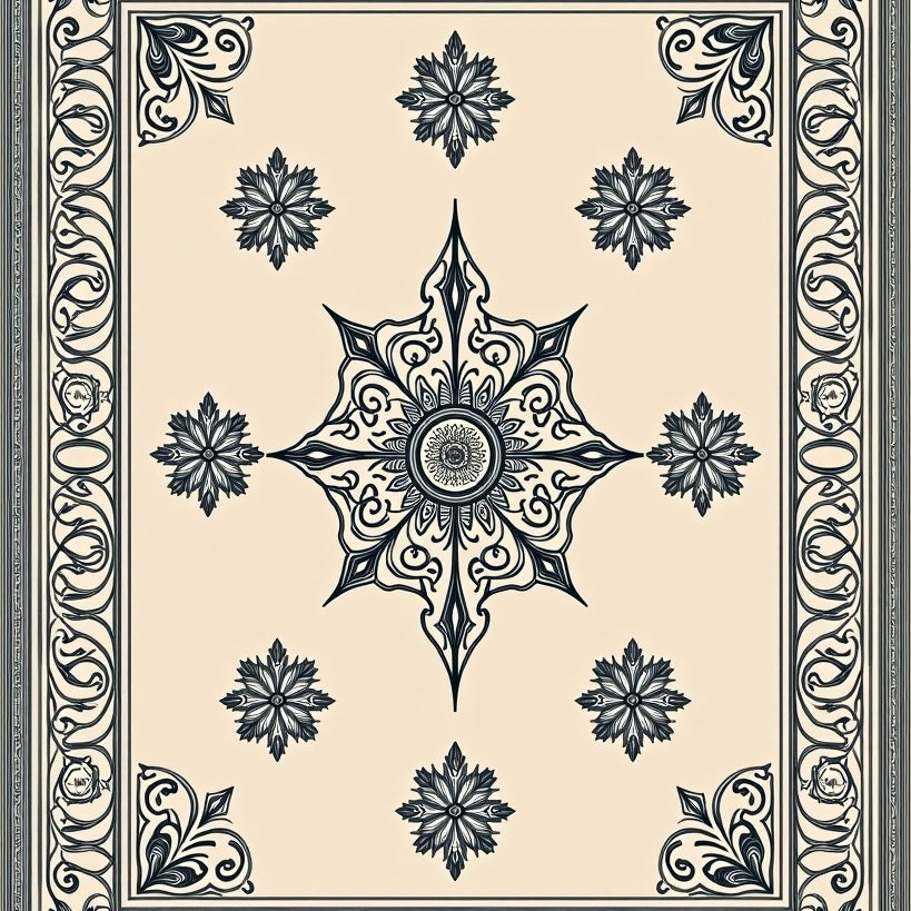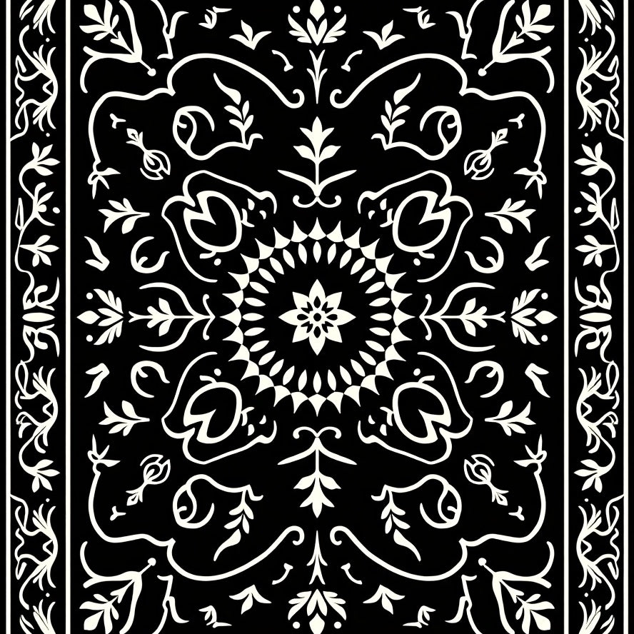 Elegant Vintage Floral Medallion Abstract Artistic Decorative(Black)