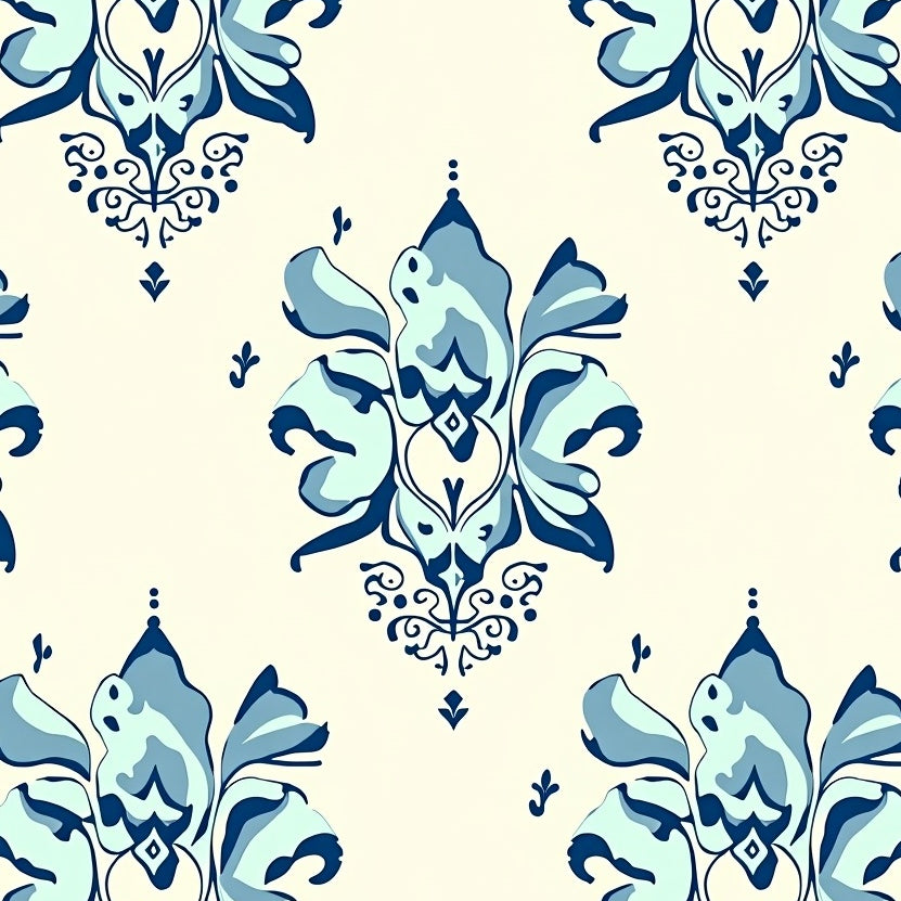 Botanical Scrollwork with Lattice Floral Filigree(Blue)