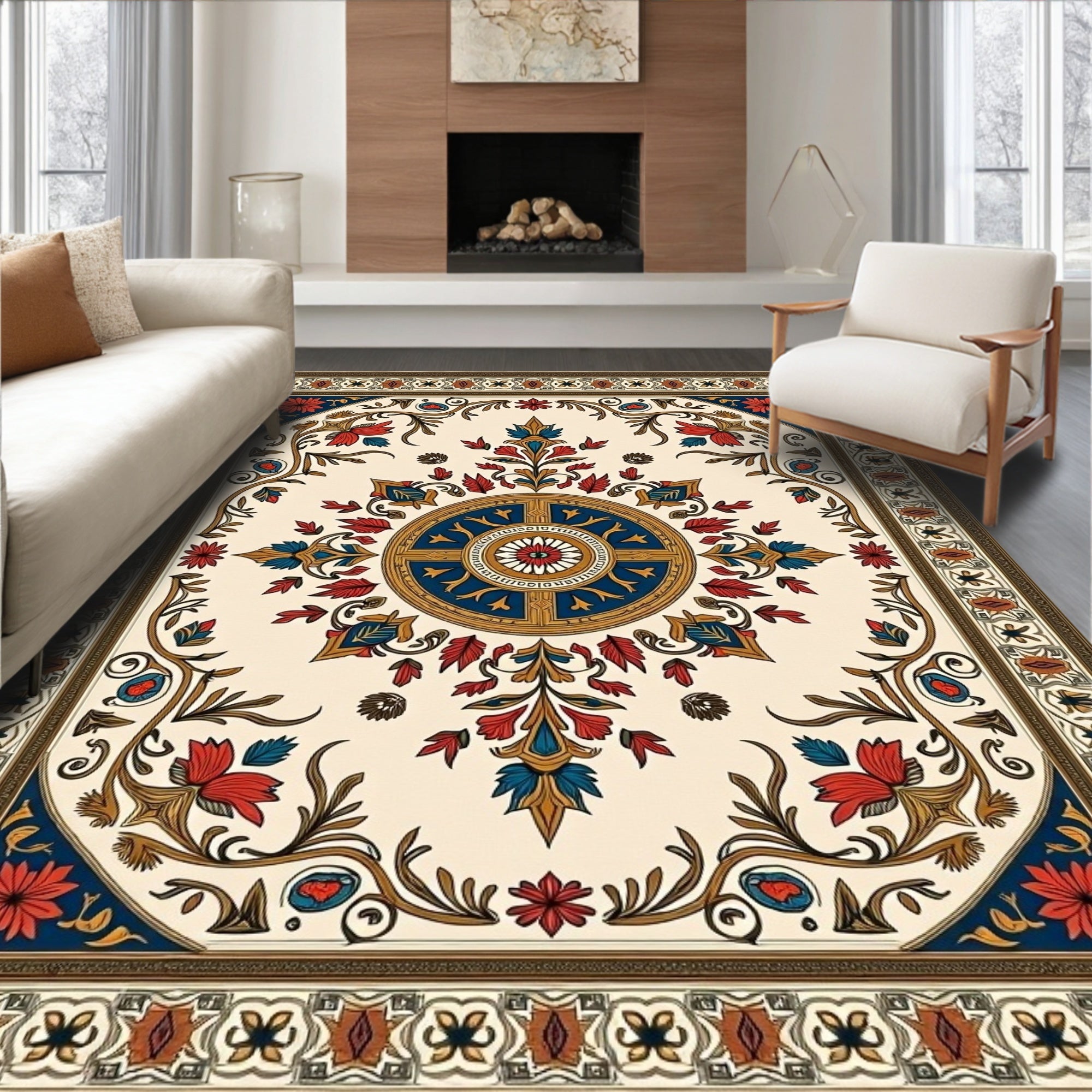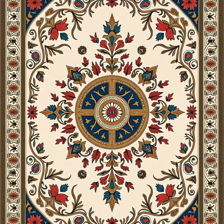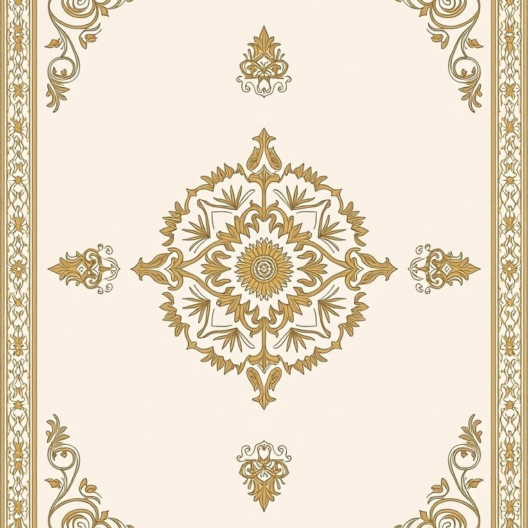 Vintage Medallion Ornate Floral Motif Traditional Decorative(Beige)