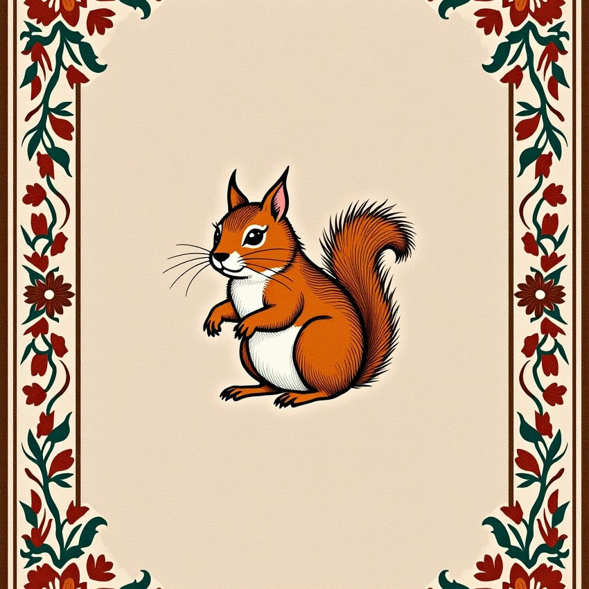 Vintage Woodland Squirrel Botanical Floral Circular Doormat(Beige)