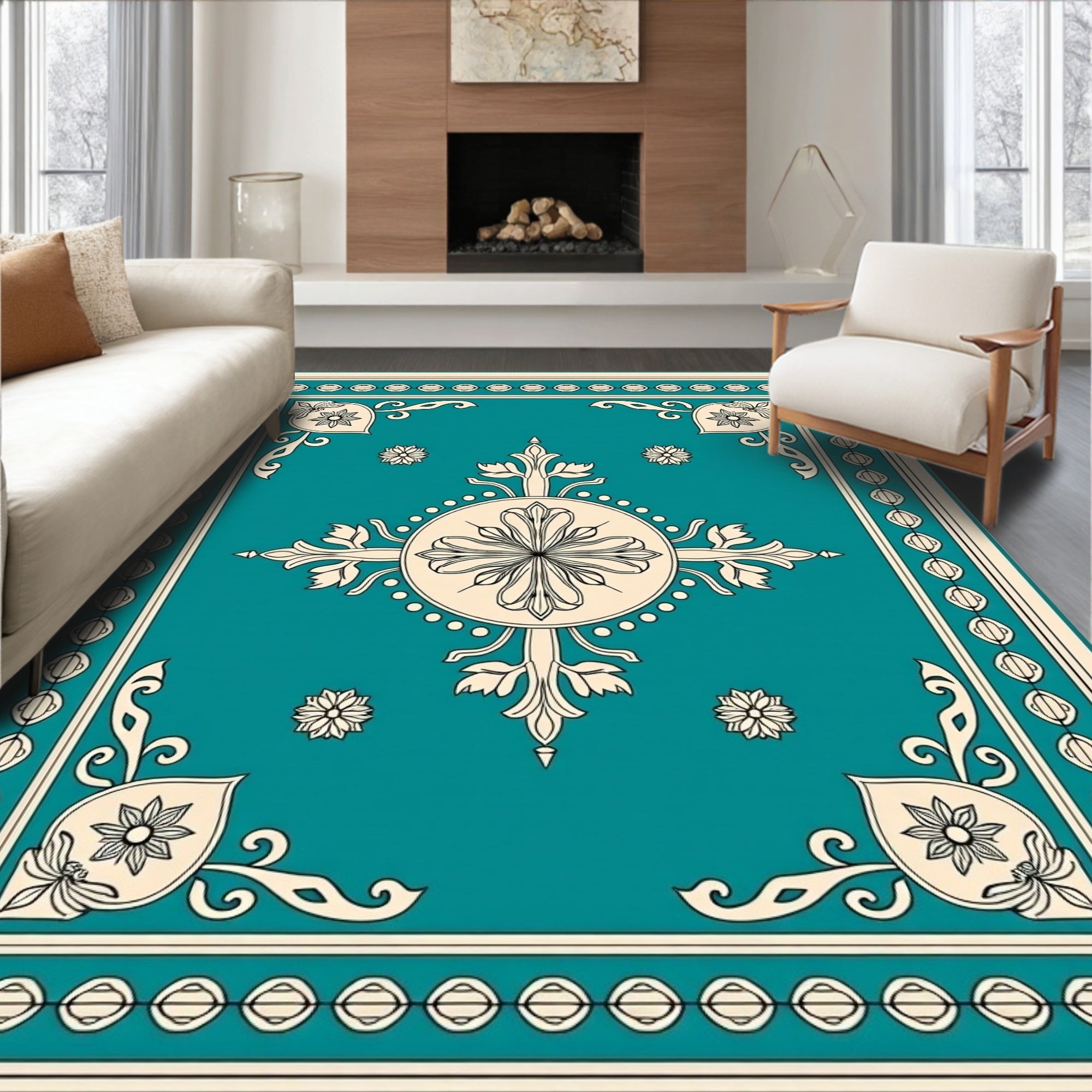 Elegant Medallion Entryway Absorbent Doormat With Ornate Floral Motifs(Blue)