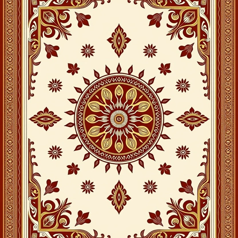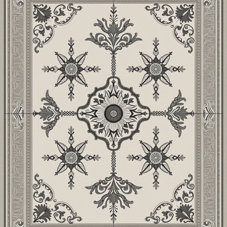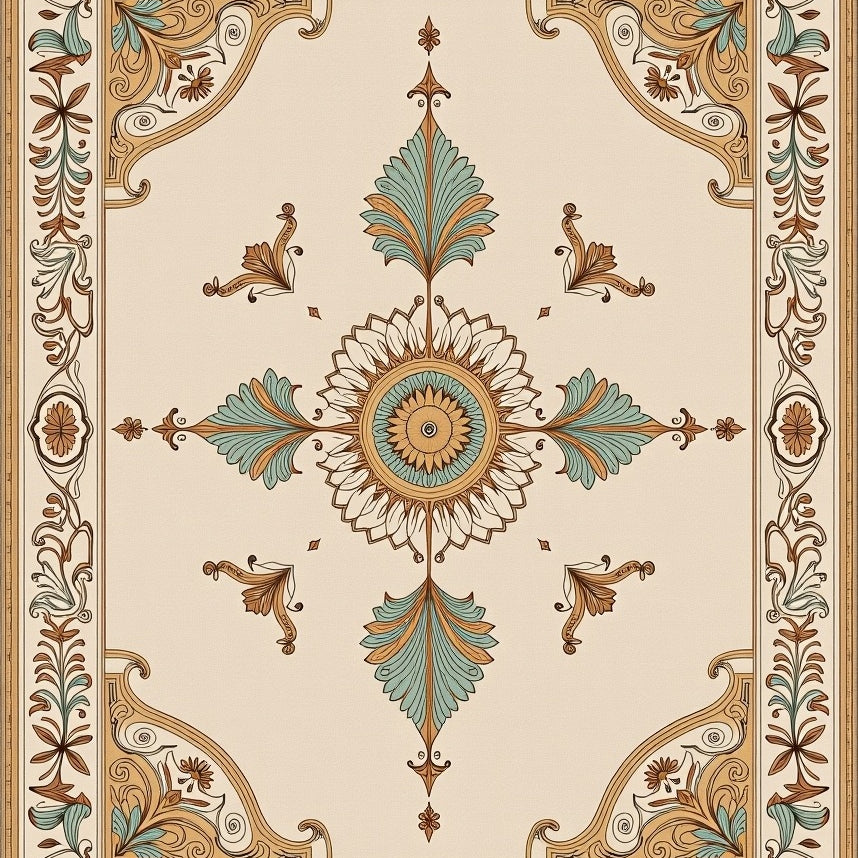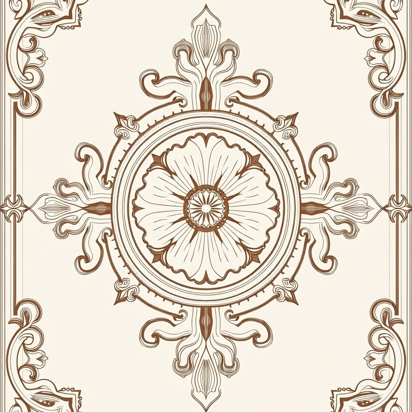 Elegant Interlocking Floral Medallion With Subtle Scroll Accents(Brown)