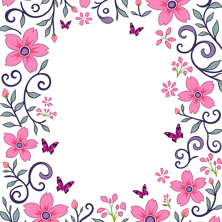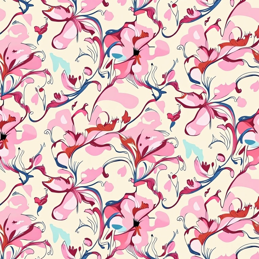 Elegant Swirl Motif with Contours and Layered Floral(Pink)