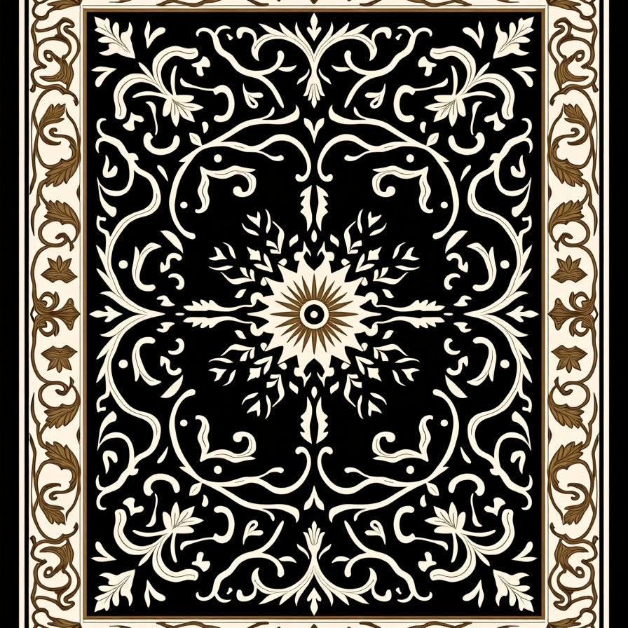 Elegant Floral Medallion with Vintage Boho Charm(Black)
