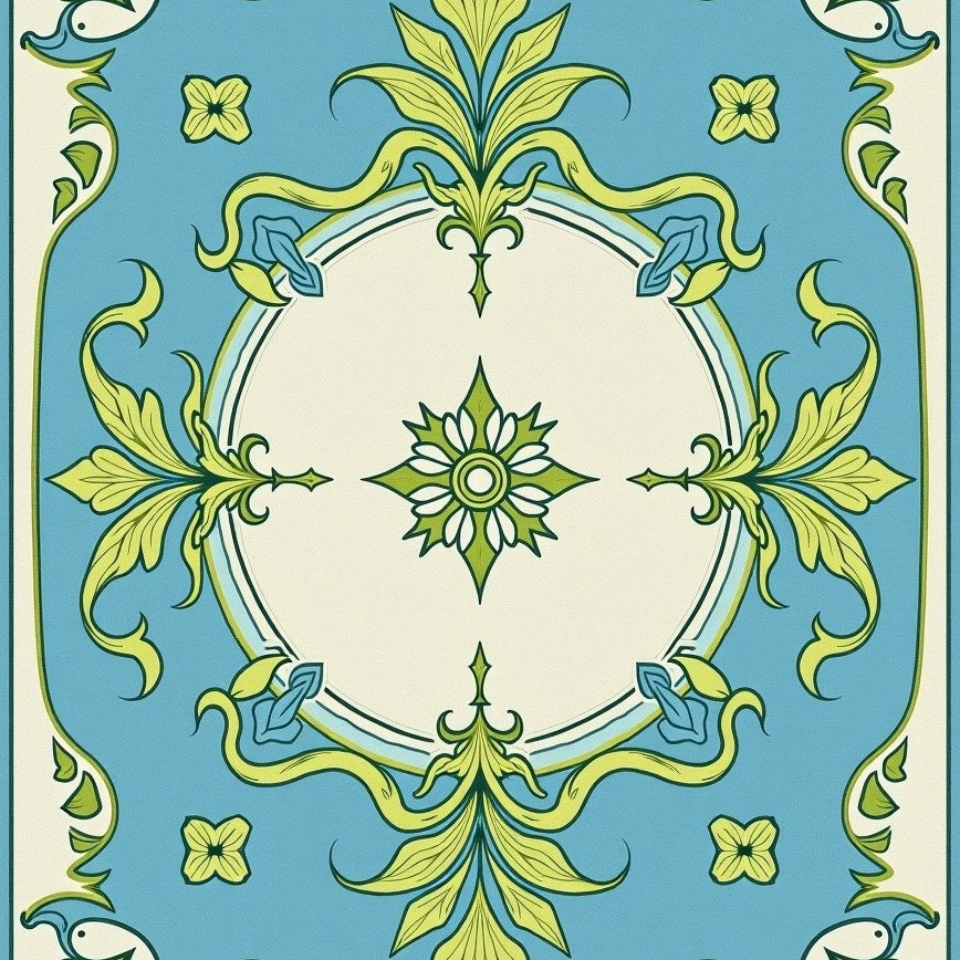 Elegant Floral Arabesque Weathered Decorative Eclectic Motif(Green)