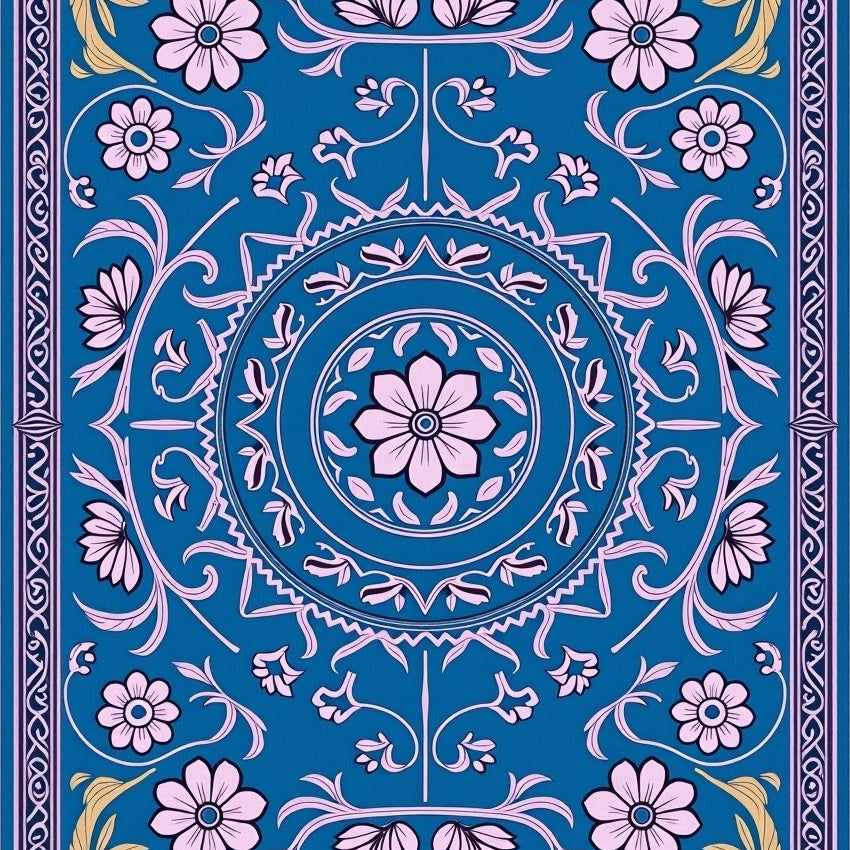 Distressed Botanical Medallion Motif with Cascading Floral Details(Blue)