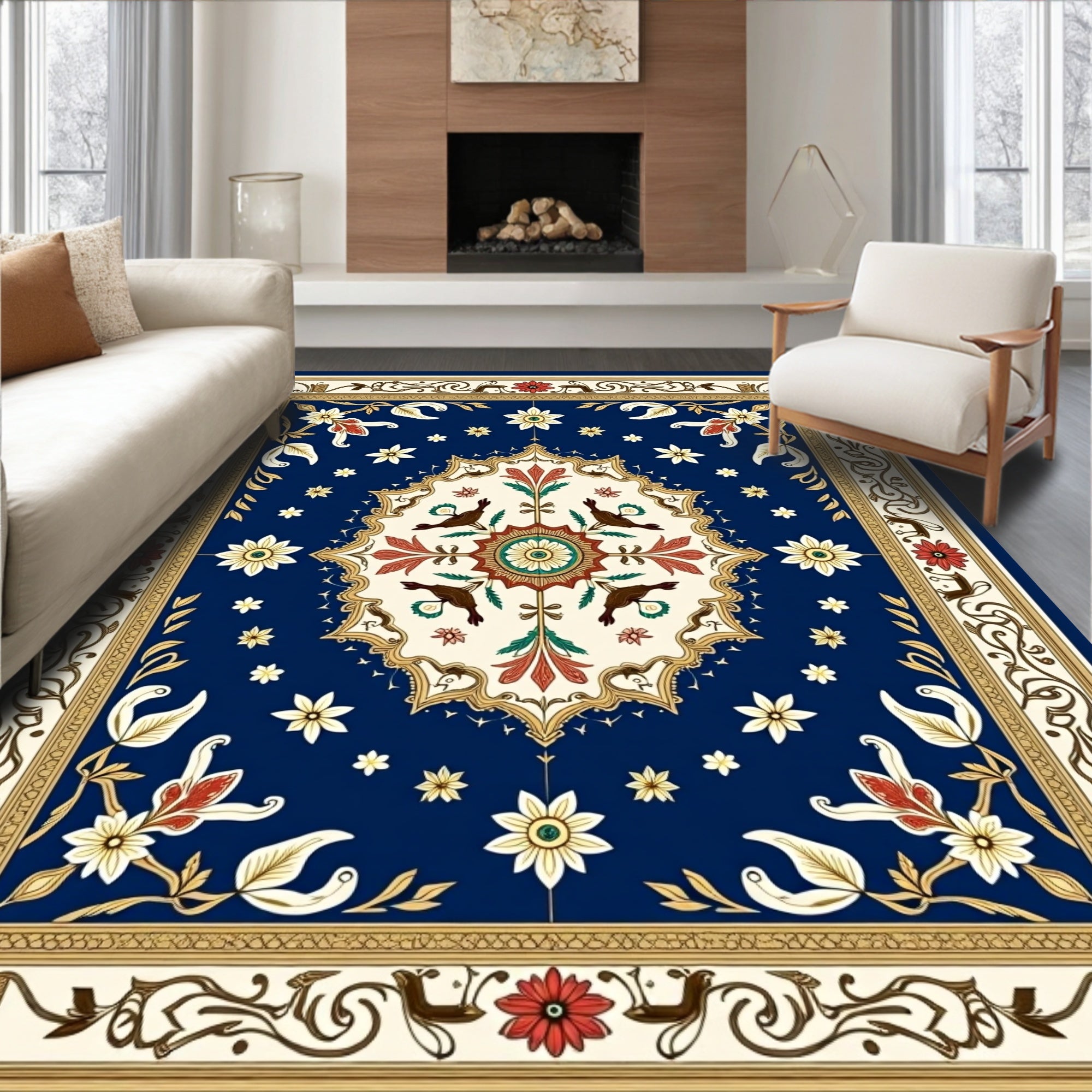 Vintage Floral Medallion Distressed Ornamental Tapestry(Blue)