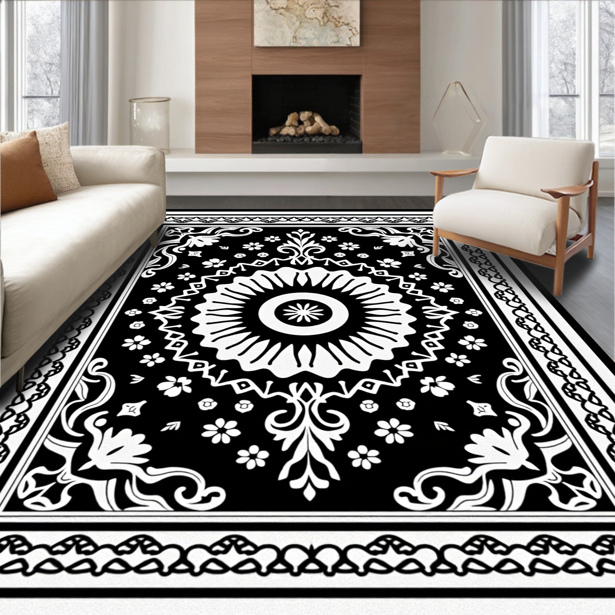 Vintage Medallion Tapestry With Floral Ornamental Border Design(Black)