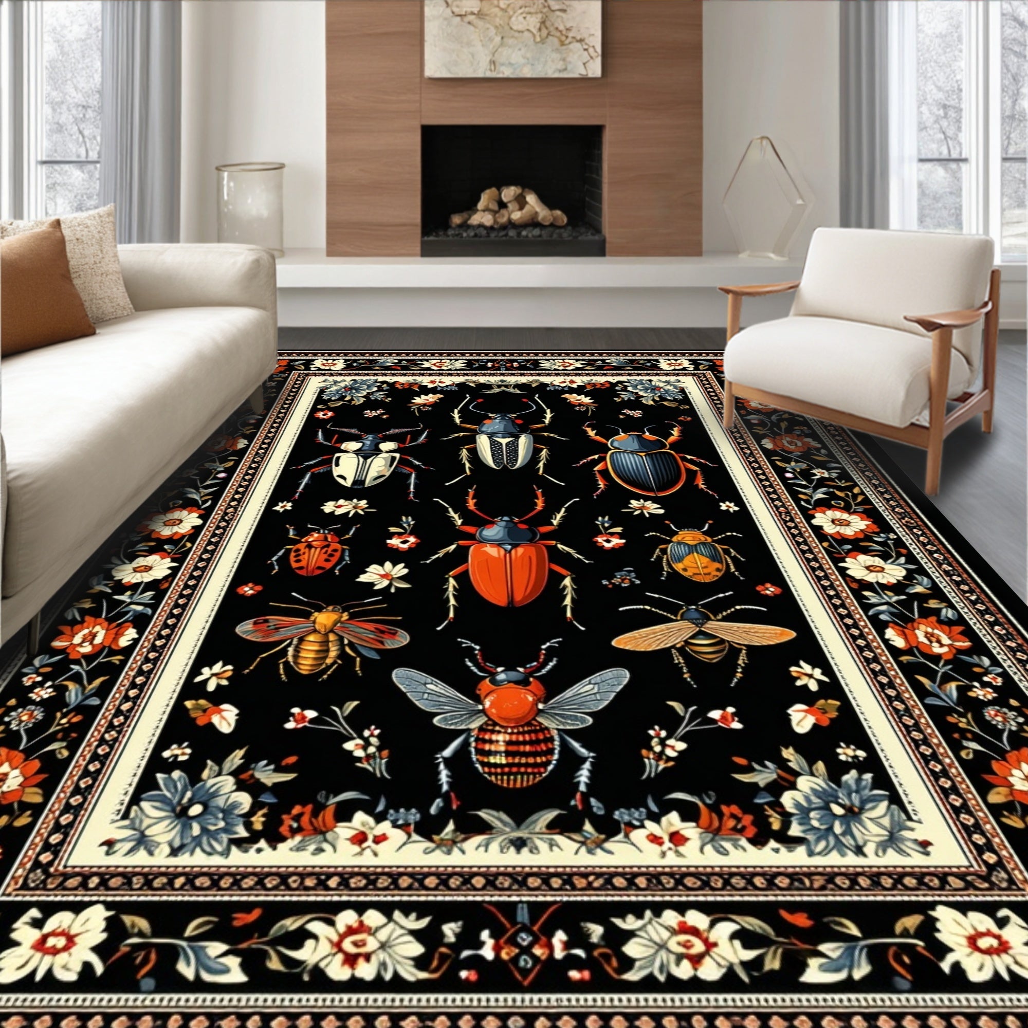 Dark Insect & Floral Vintage Printed Accent(Black)