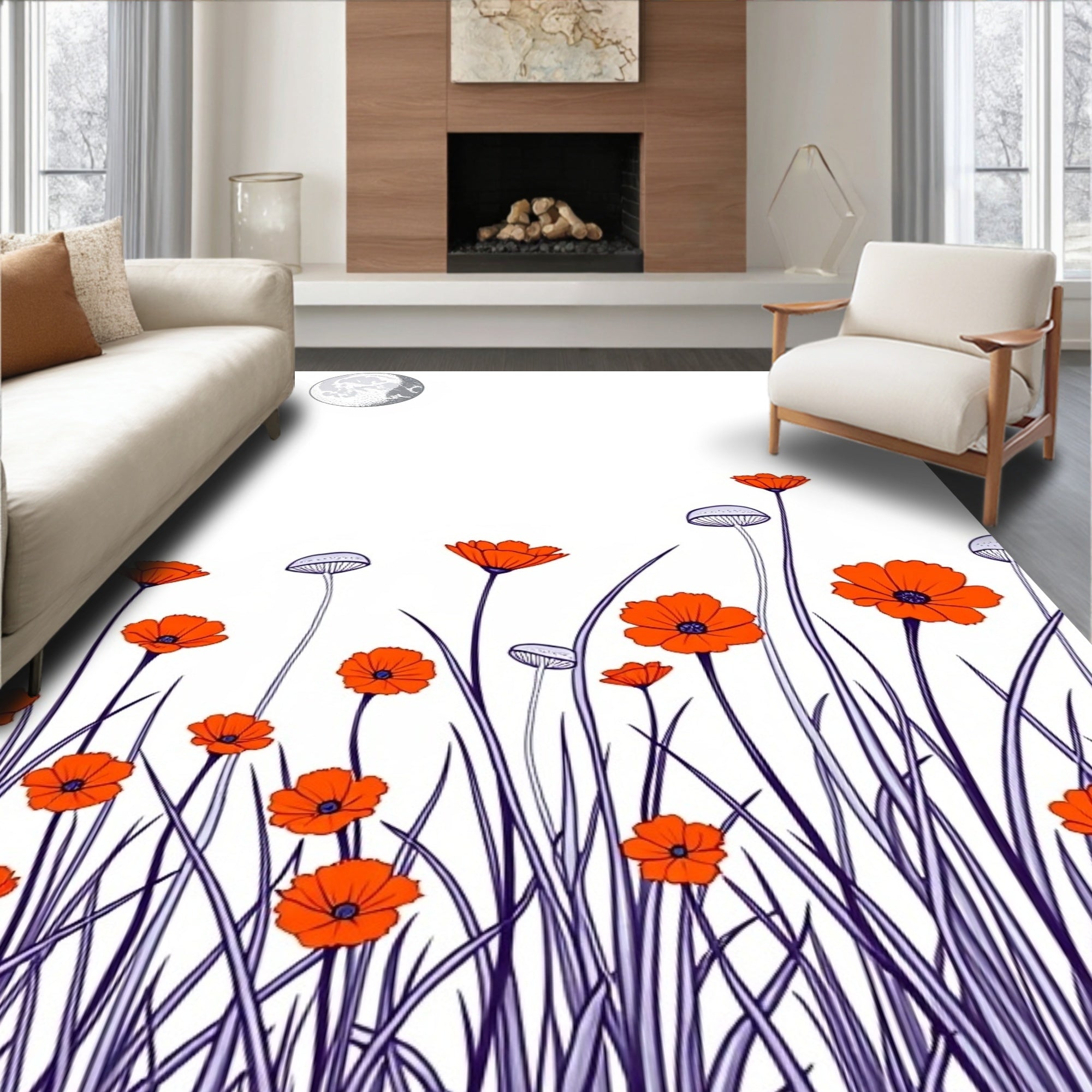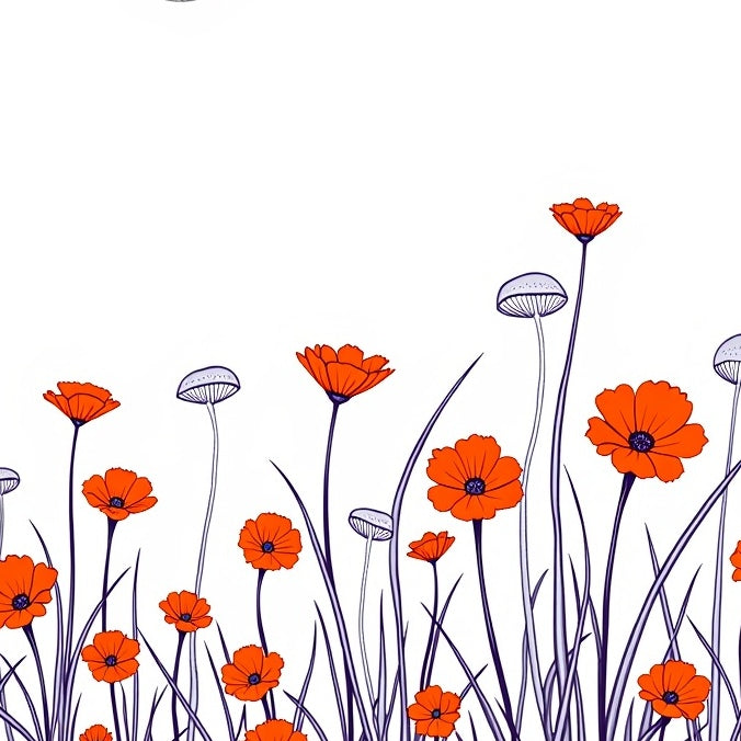 Harvest Season Poppy Meadow Floral with Autumn Blooms(Orange)