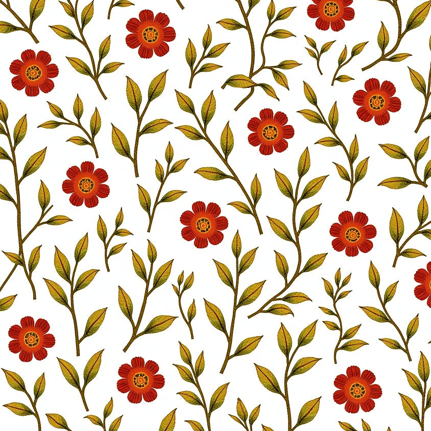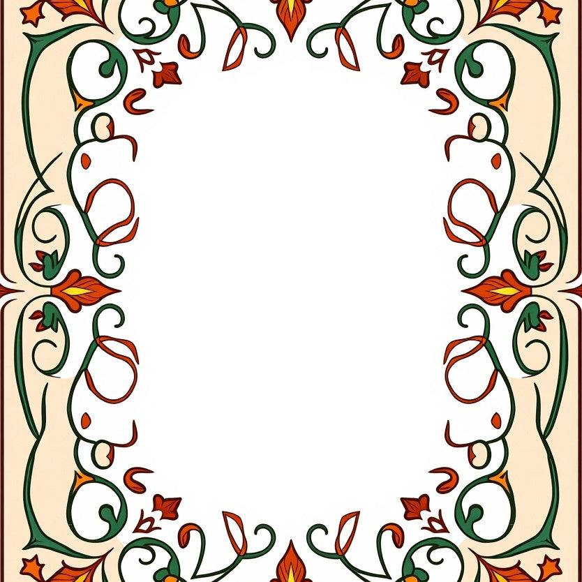 Autumnal Vines Interlocking with Rustic Floral Accents(Red)