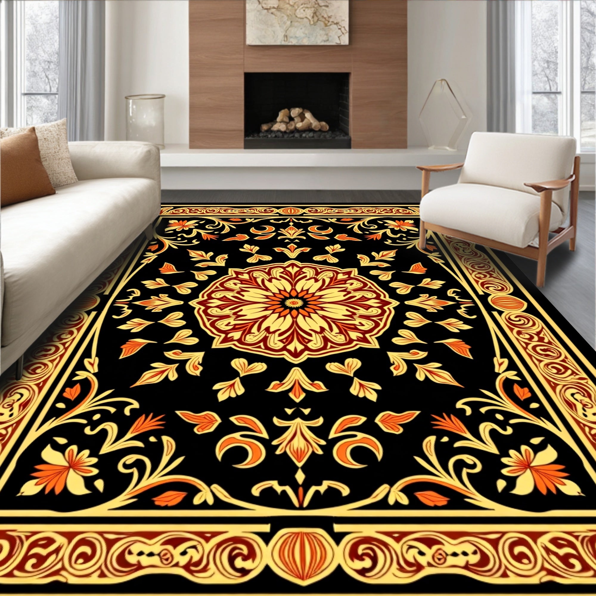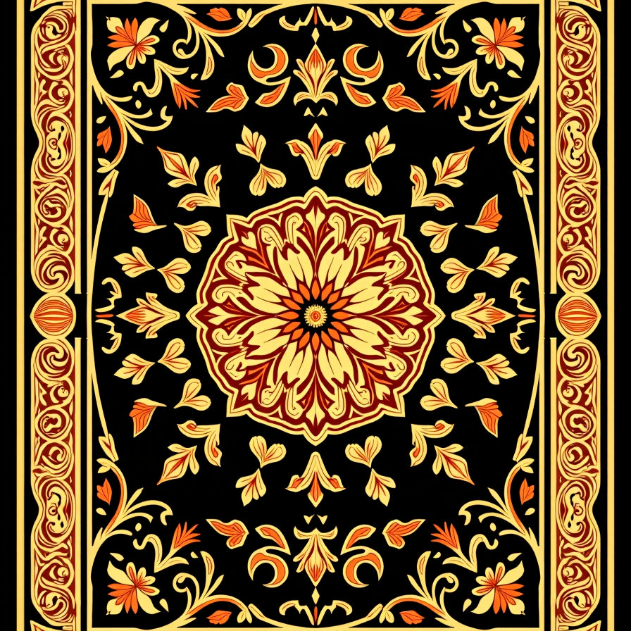 Botanical Flourish with Ornate Floral Medallion Arrangement(Black)